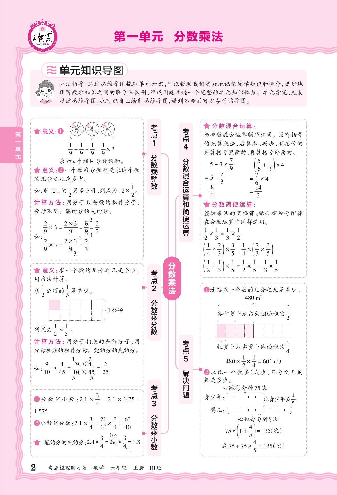 2024秋上册六年级数学人教版 考点梳理补缺手册——第一单元 分数乘法