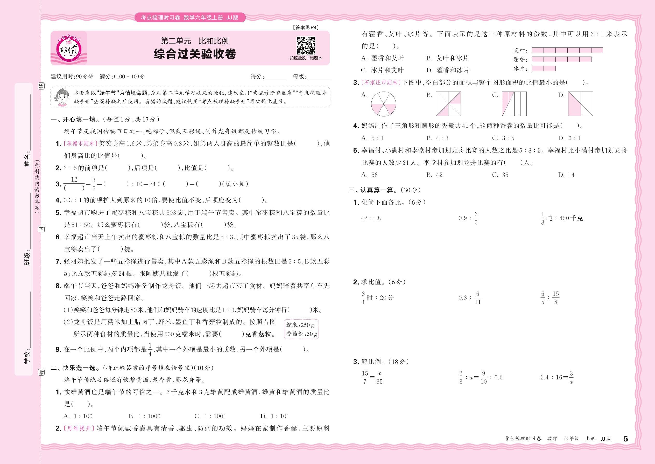 2024秋上册六年级数学冀教版 第二单元 综合过关验收卷