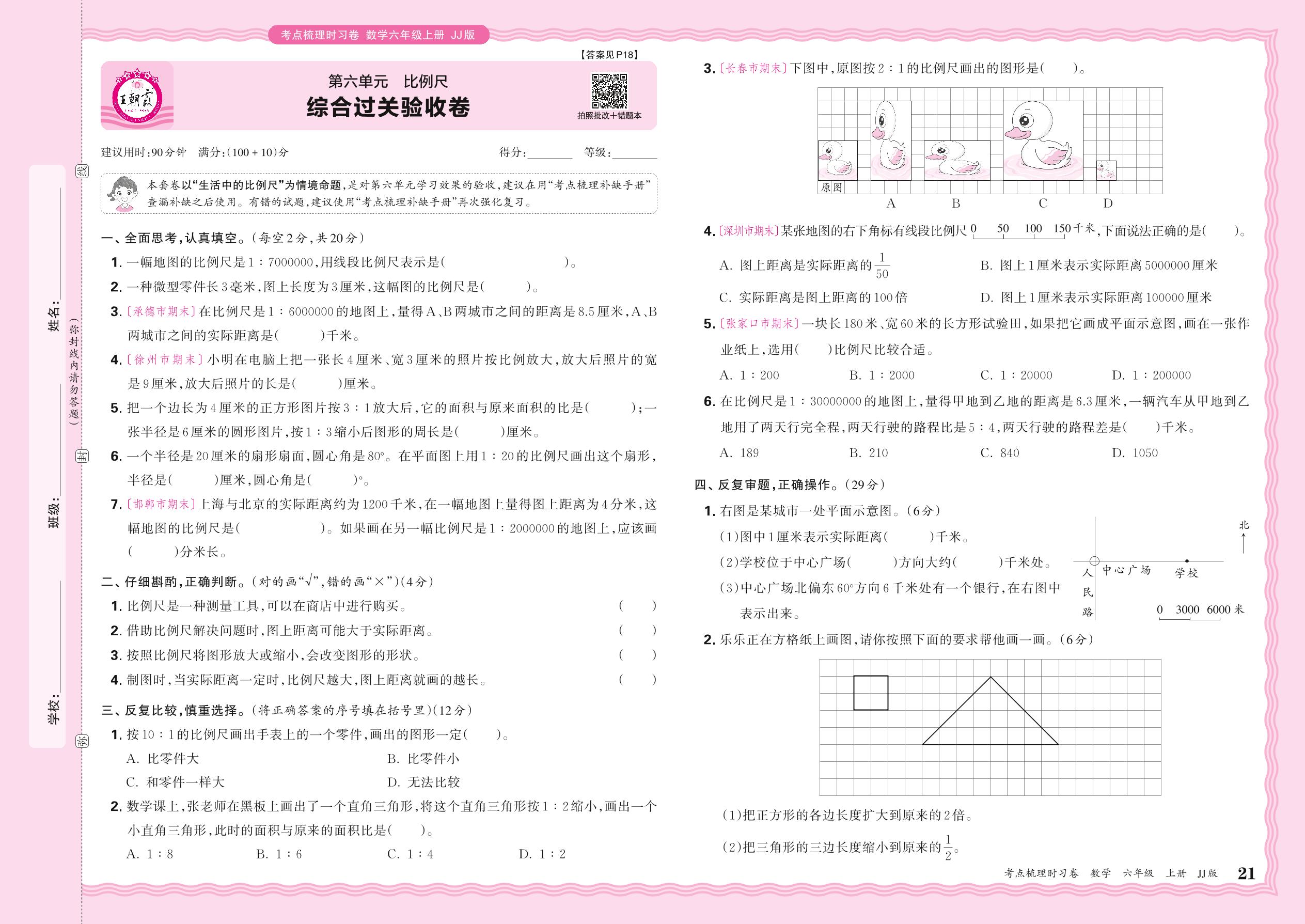 2024秋上册六年级数学冀教版 第六单元 综合过关验收卷