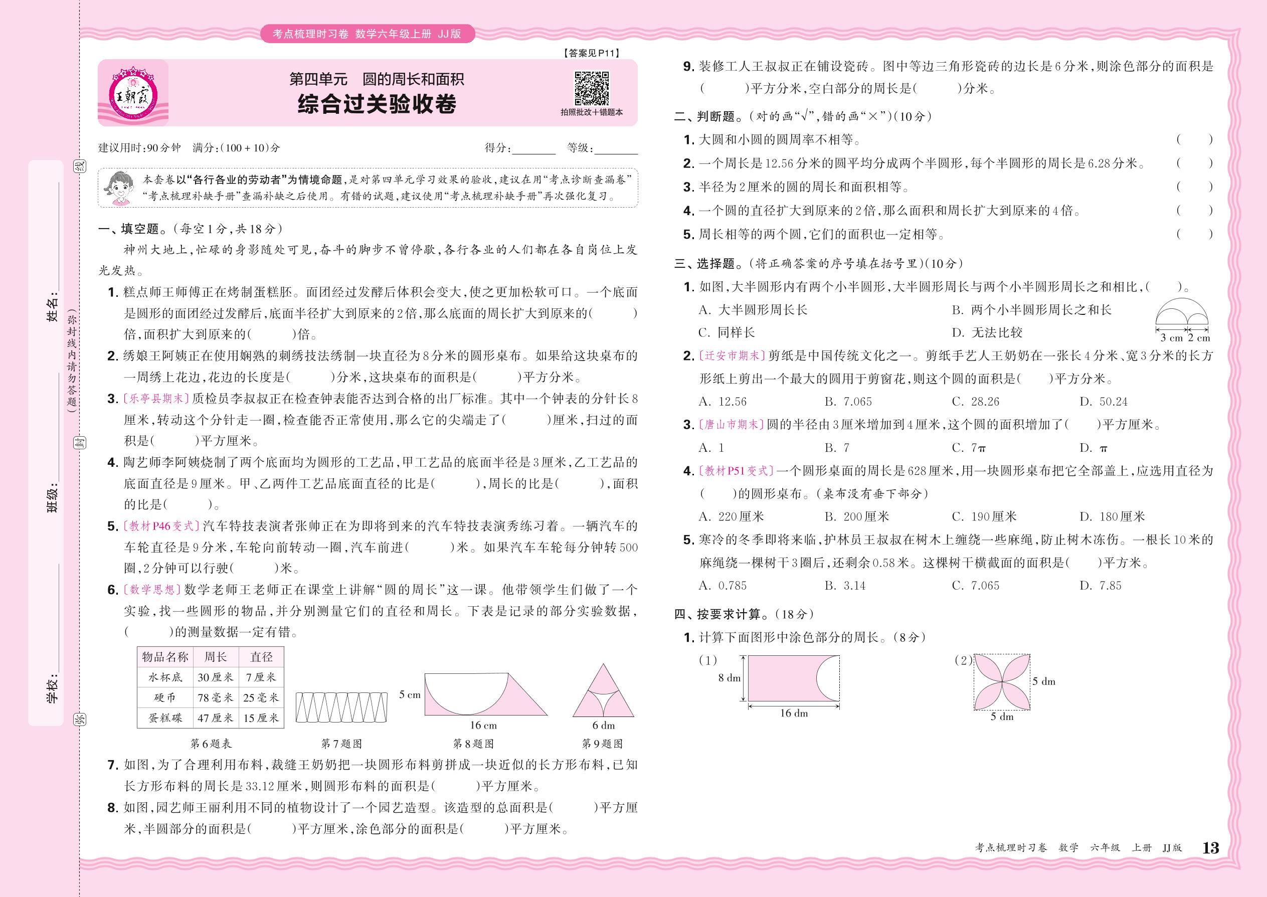 六年级数学冀教版上册单元卷