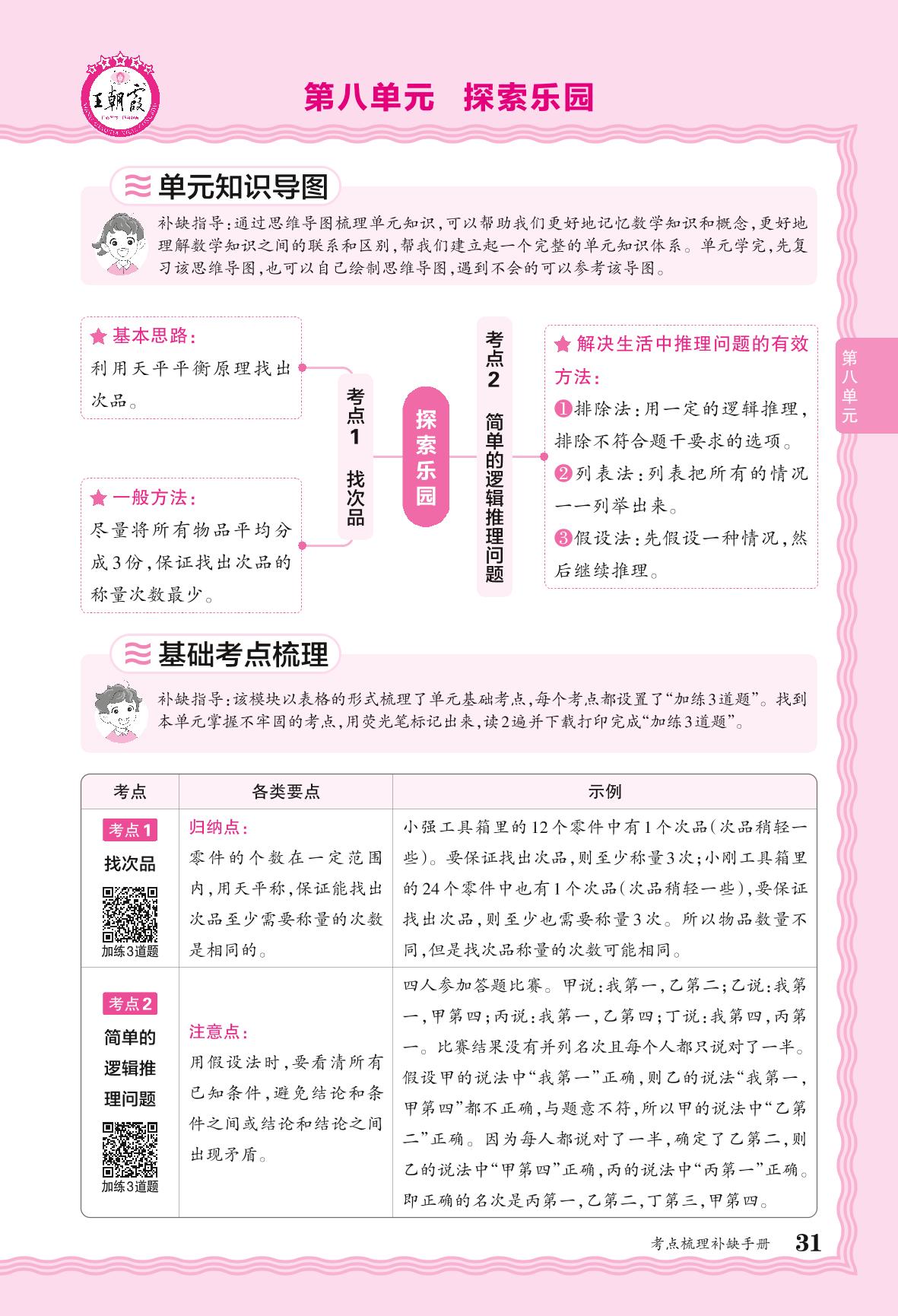 2024秋上册六年级数学冀教版 考点梳理补缺手册——第八单元 探索乐园