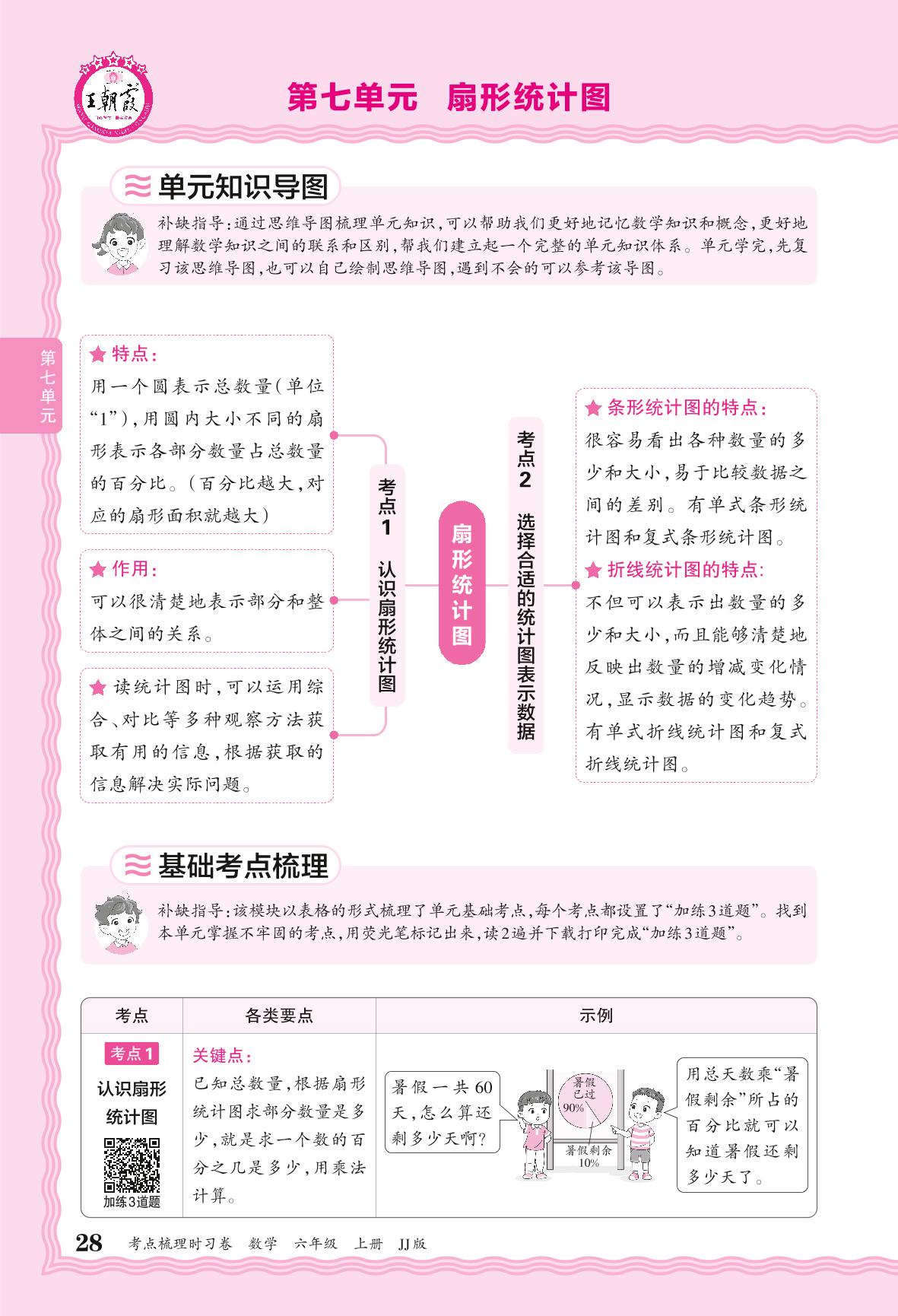 2024秋上册六年级数学冀教版 考点梳理补缺手册——第七单元 扇形统计图