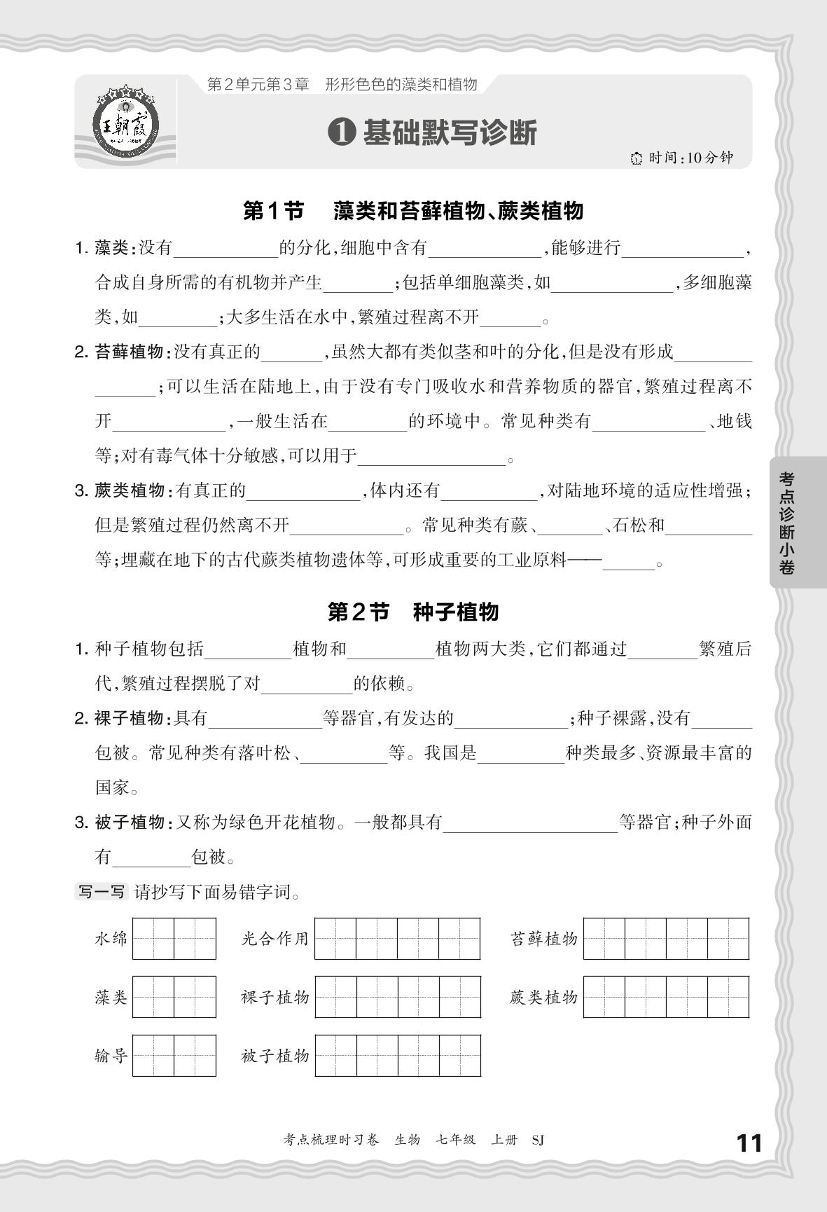 2024秋上册七年级生物苏教版 第2单元第3章 基础默写诊断