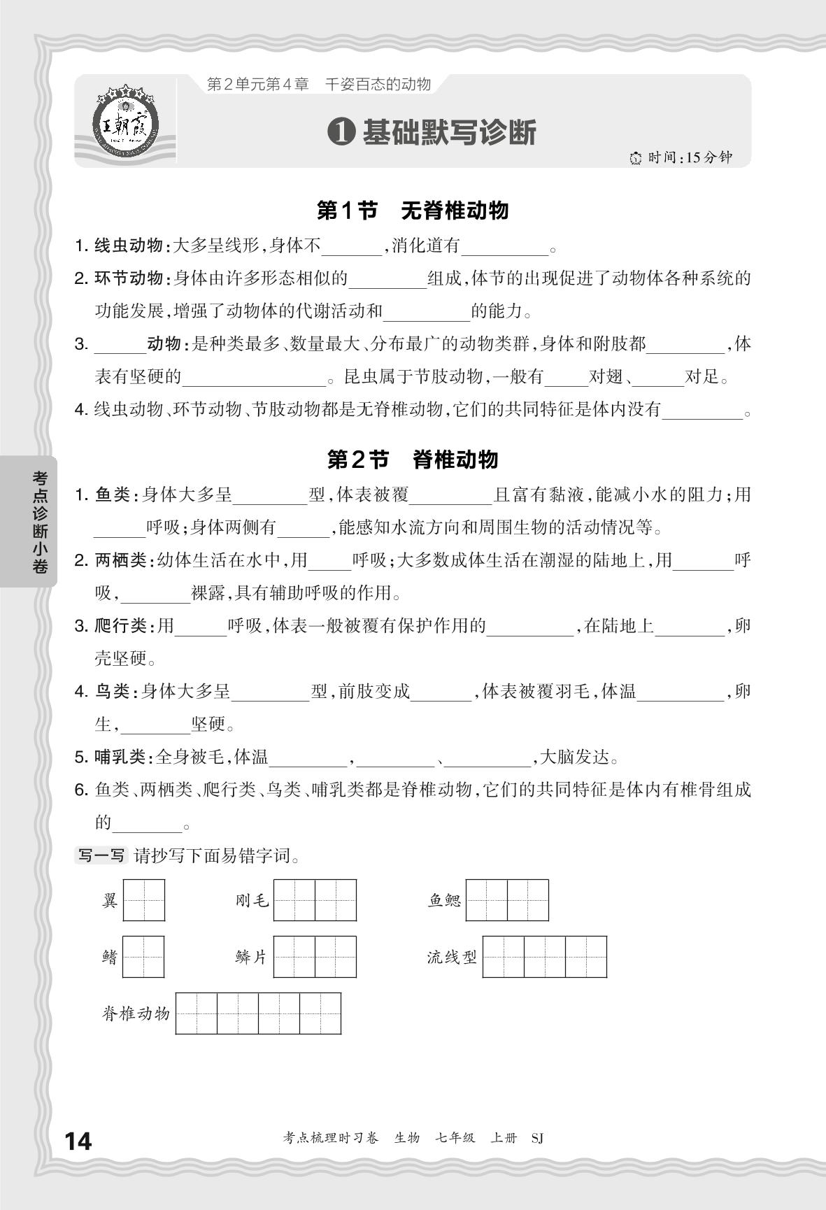 2024秋上册七年级生物苏教版 第2单元第4章 基础默写诊断