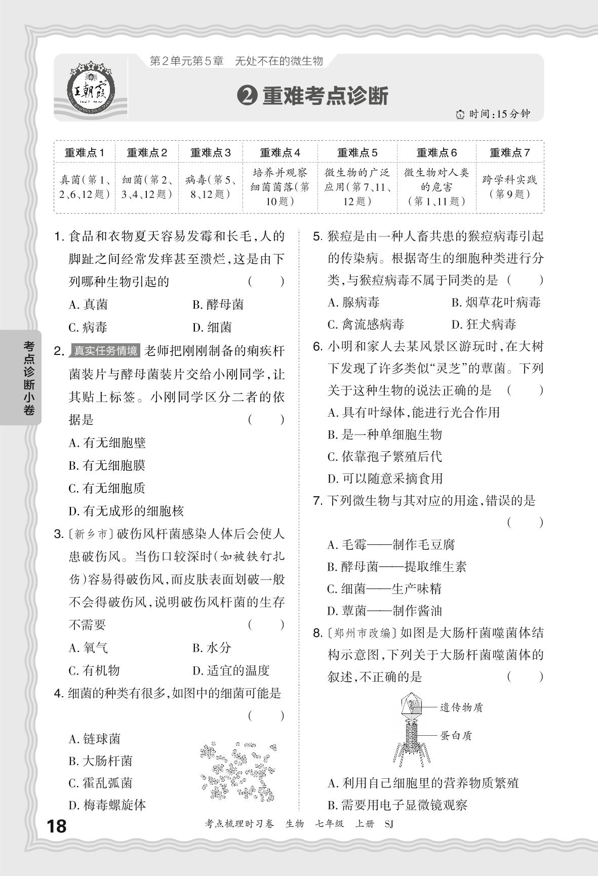 2024秋上册七年级生物苏教版 第2单元第5章 重难考点诊断
