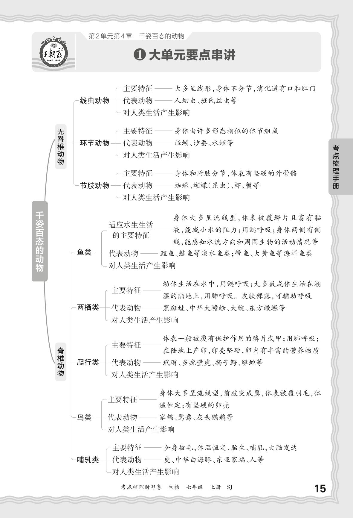 2024秋上册七年级生物苏教版 考点梳理手册——第2单元第4章 千姿百态的动物
