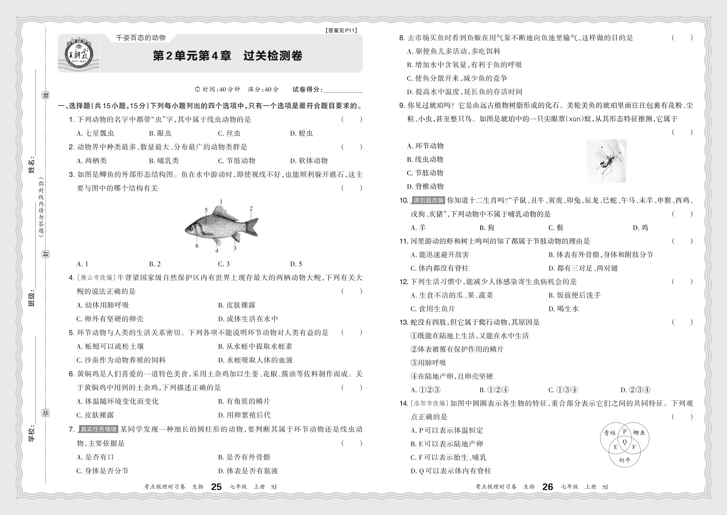 2024秋上册七年级生物苏教版 第2单元第4章 过关检测卷