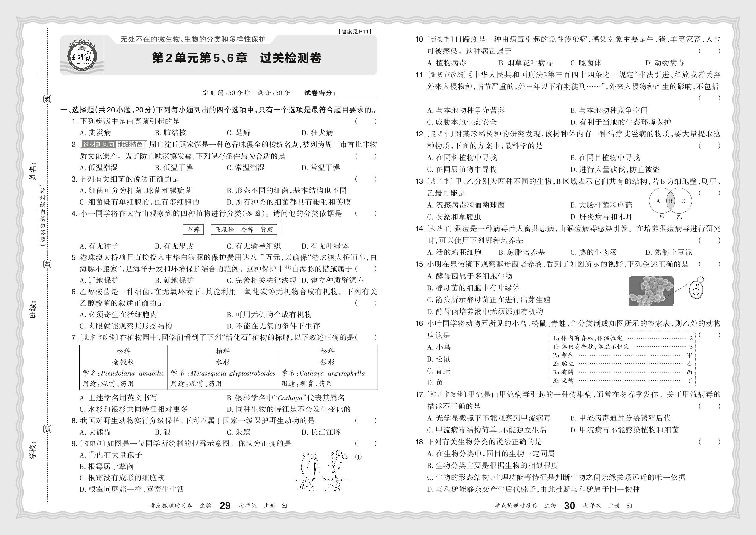2024秋上册七年级生物苏教版 第2单元第5、6章 过关检测卷