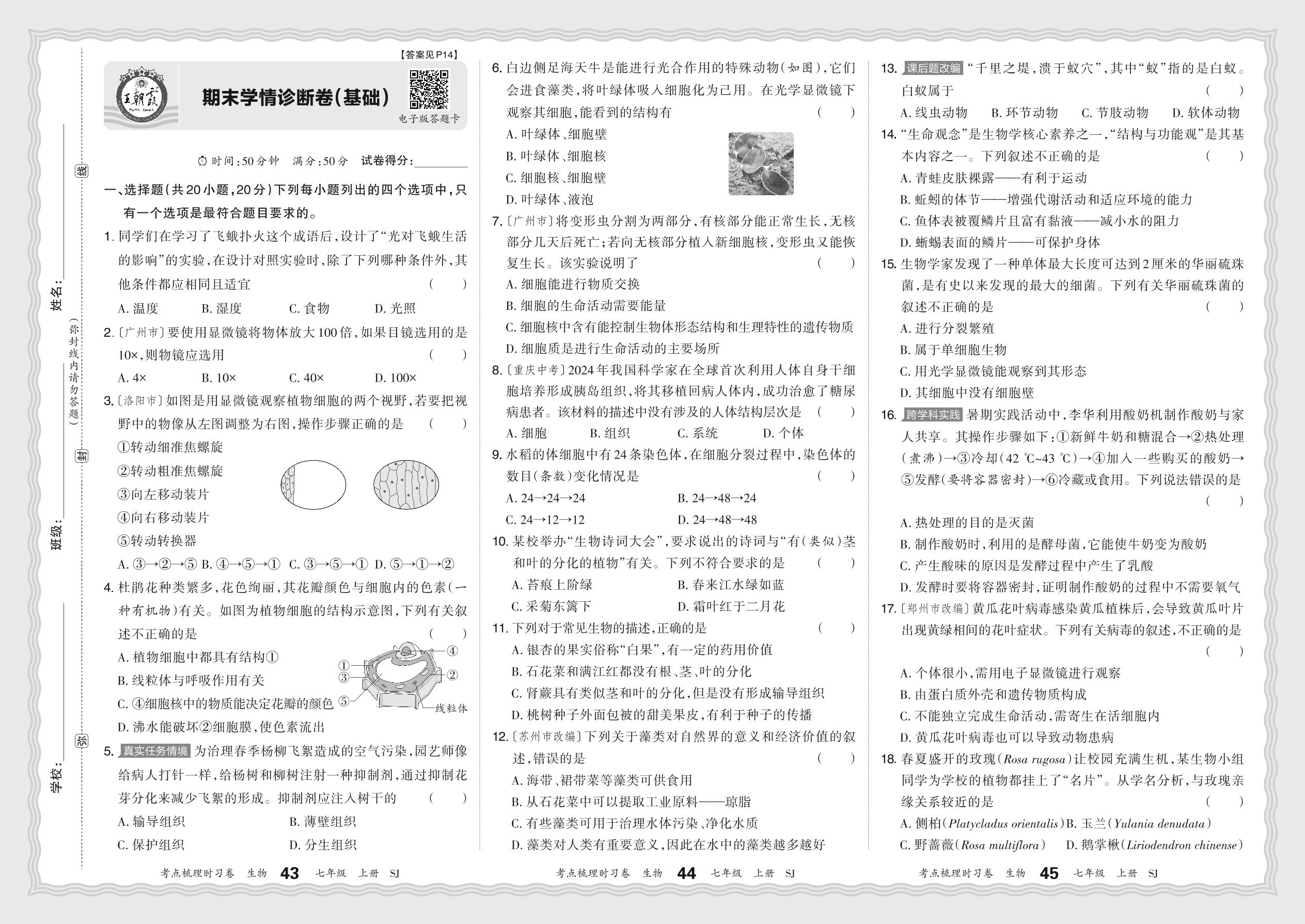 2024秋上册七年级生物苏教版 期末学情诊断卷(基础)