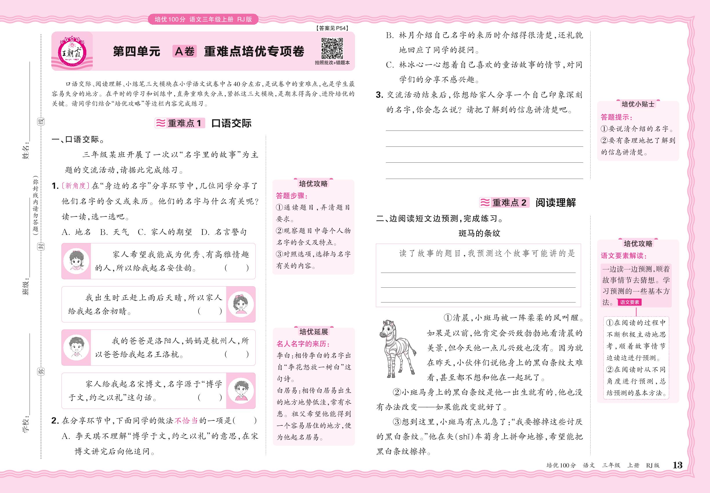 2024秋上册三年级语文人教版 第四单元A卷 重难点培优专项卷