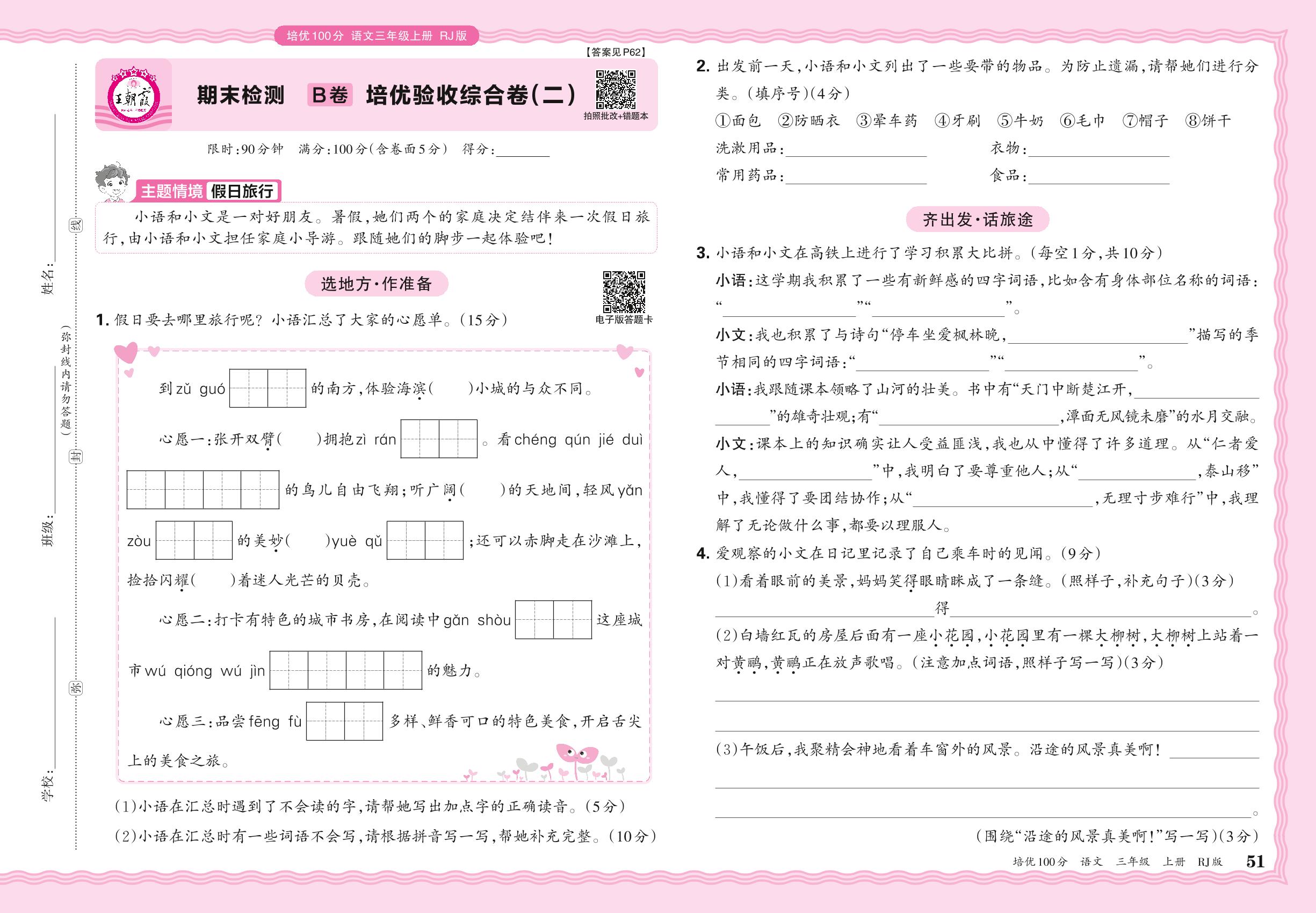2024秋上册三年级语文人教版 期末检测B卷 培优验收综合卷(二)