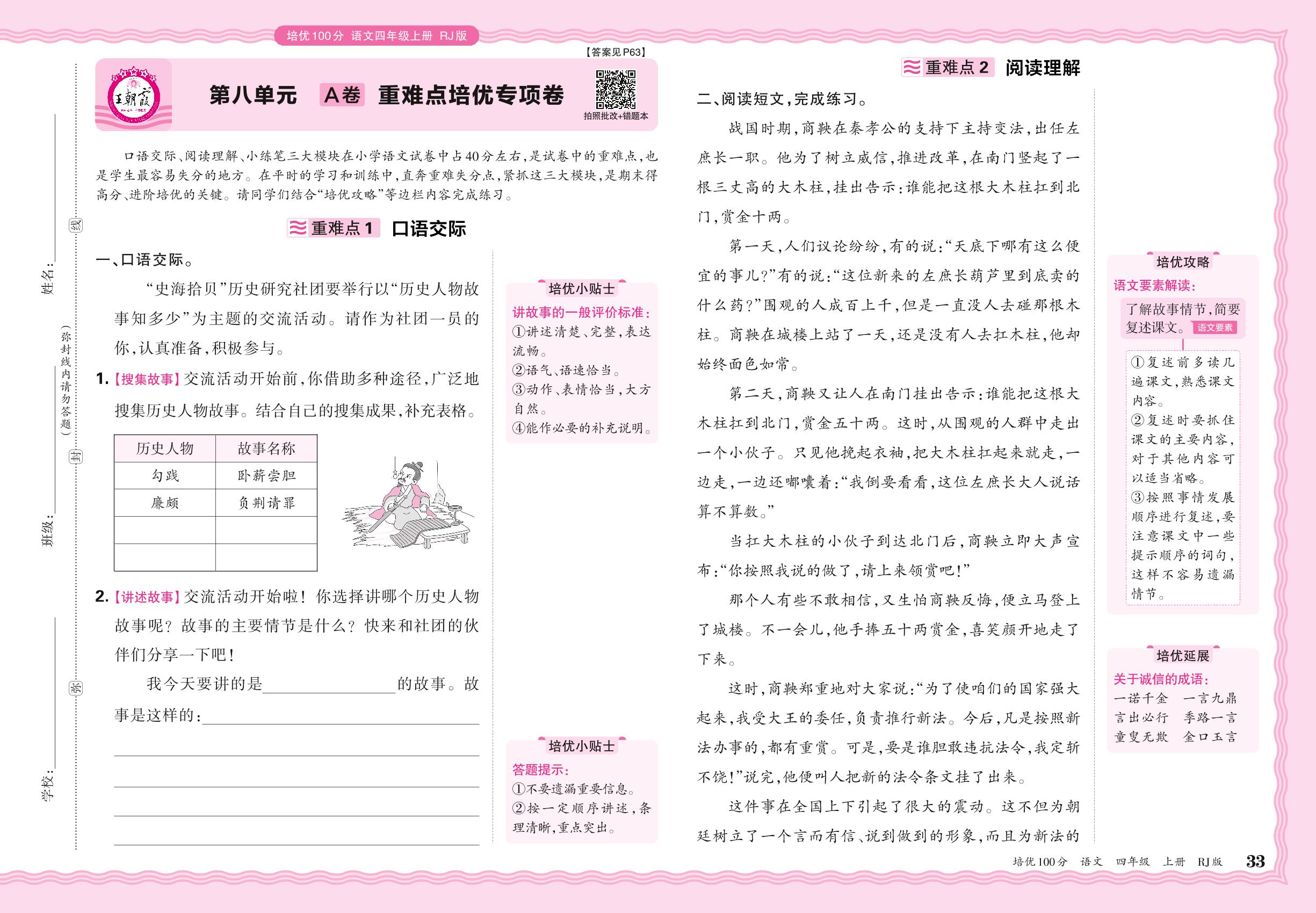 2024秋上册四年级语文人教版 第八单元A卷 重难点培优专项卷