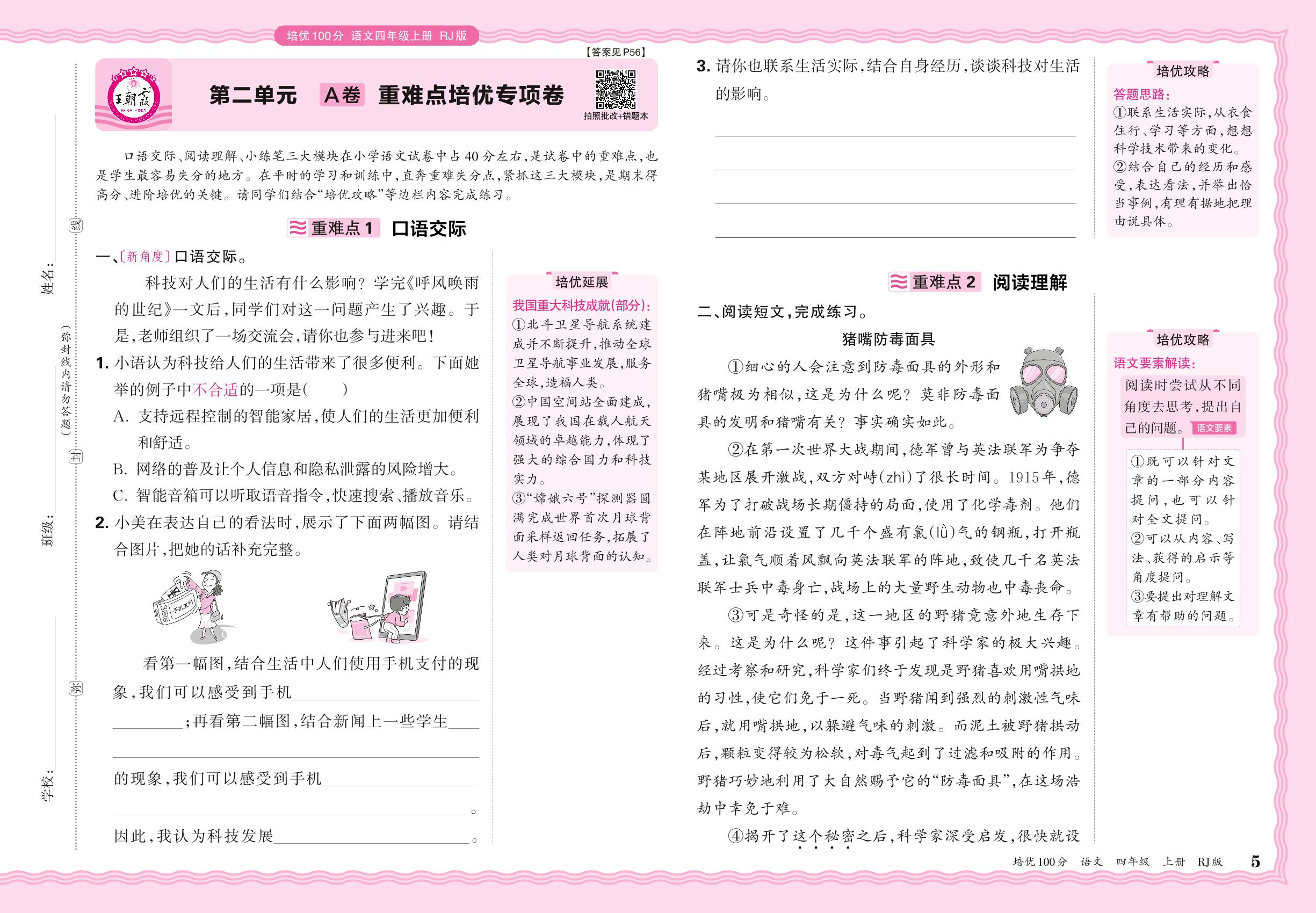 2024秋上册四年级语文人教版 第二单元A卷 重难点培优专项卷