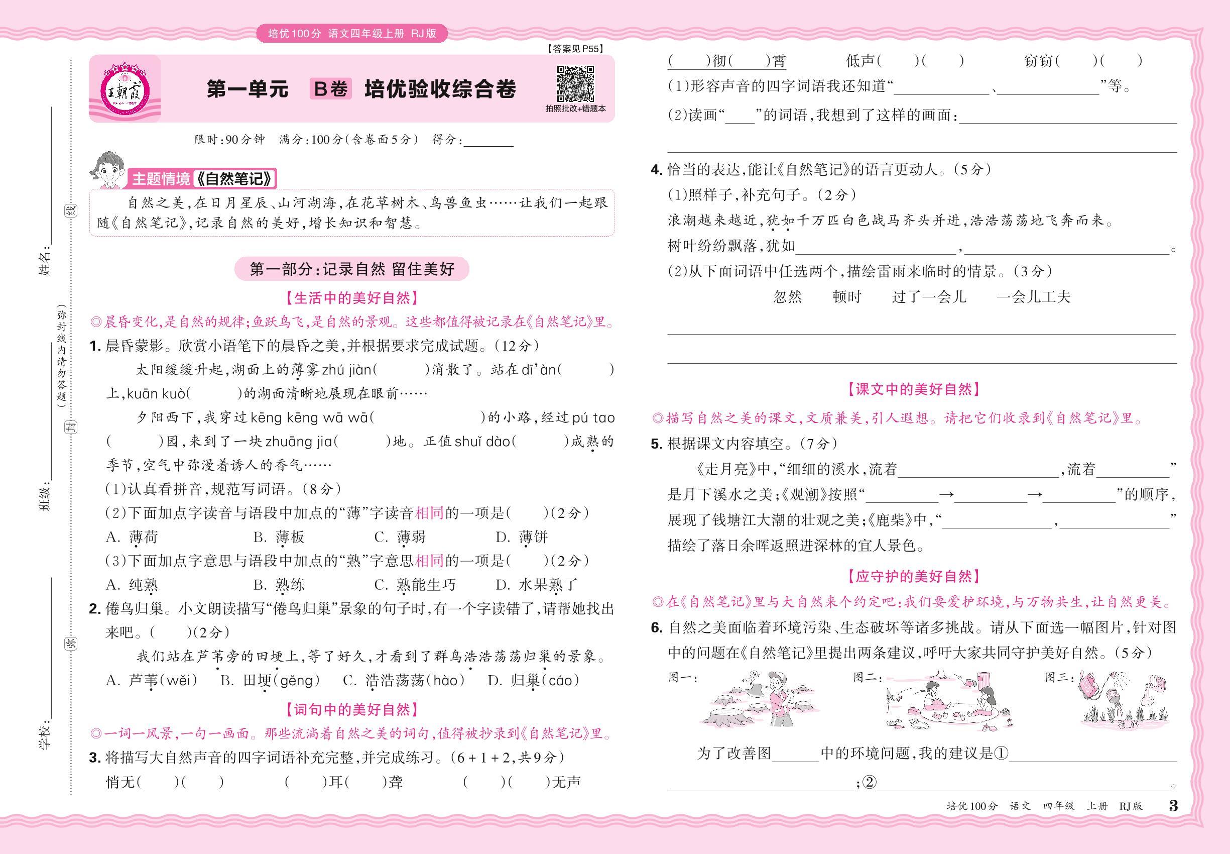2024秋上册四年级语文人教版 第一单元B卷 培优验收综合卷