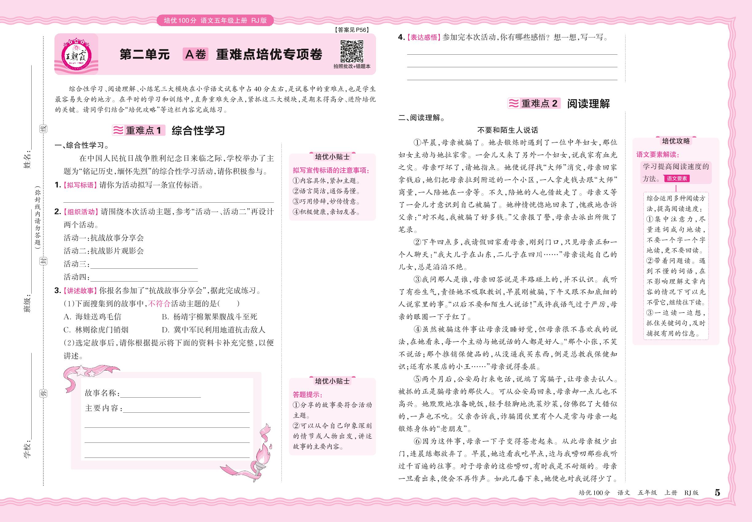 2024秋上册五年级语文人教版 第二单元A卷 重难点培优专项卷