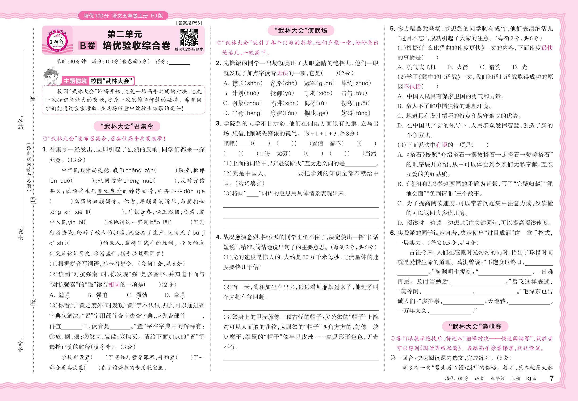 2024秋上册五年级语文人教版 第二单元B卷 培优验收综合卷