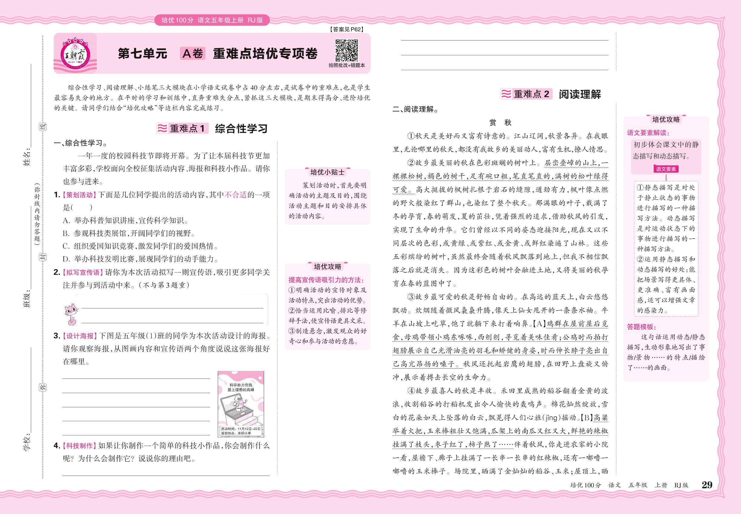 2024秋上册五年级语文人教版 第七单元A卷 重难点培优专项卷