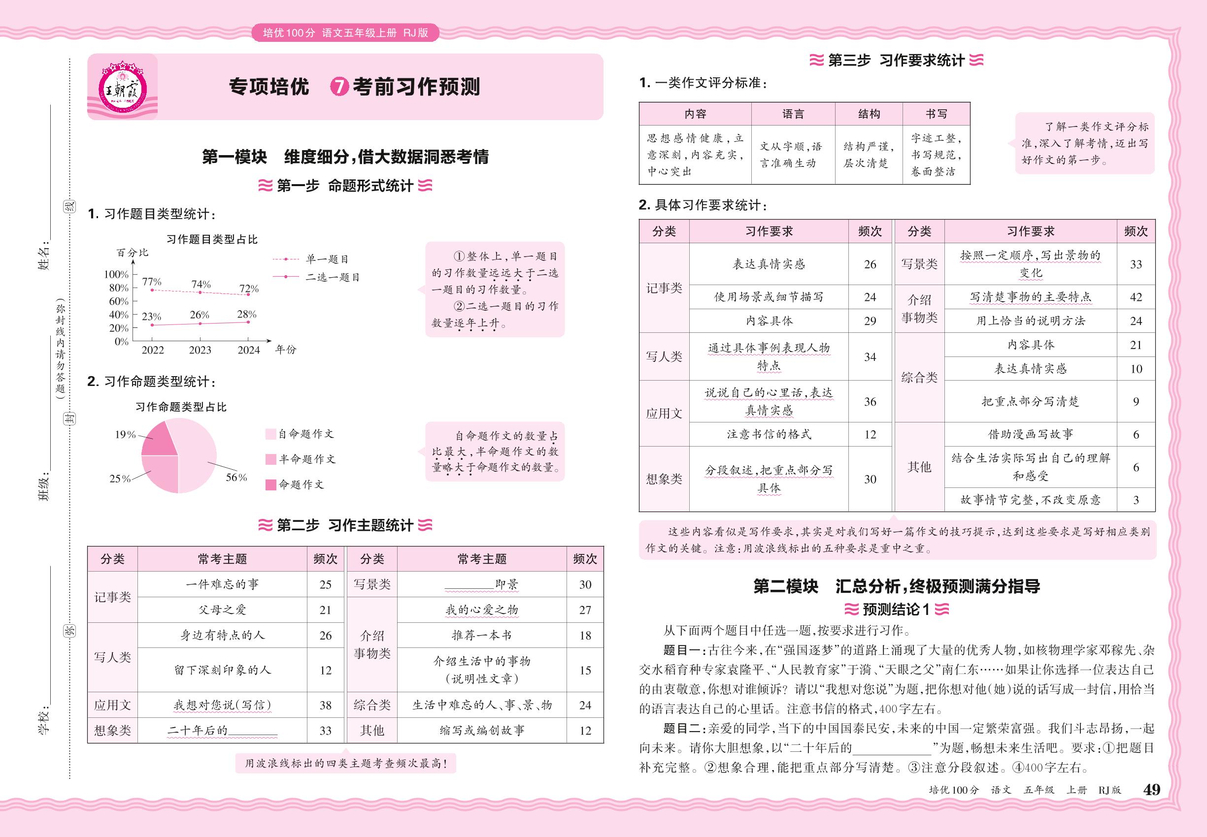 2024秋上册五年级语文人教版 期末专项卷PY版·考前习作预测【7】