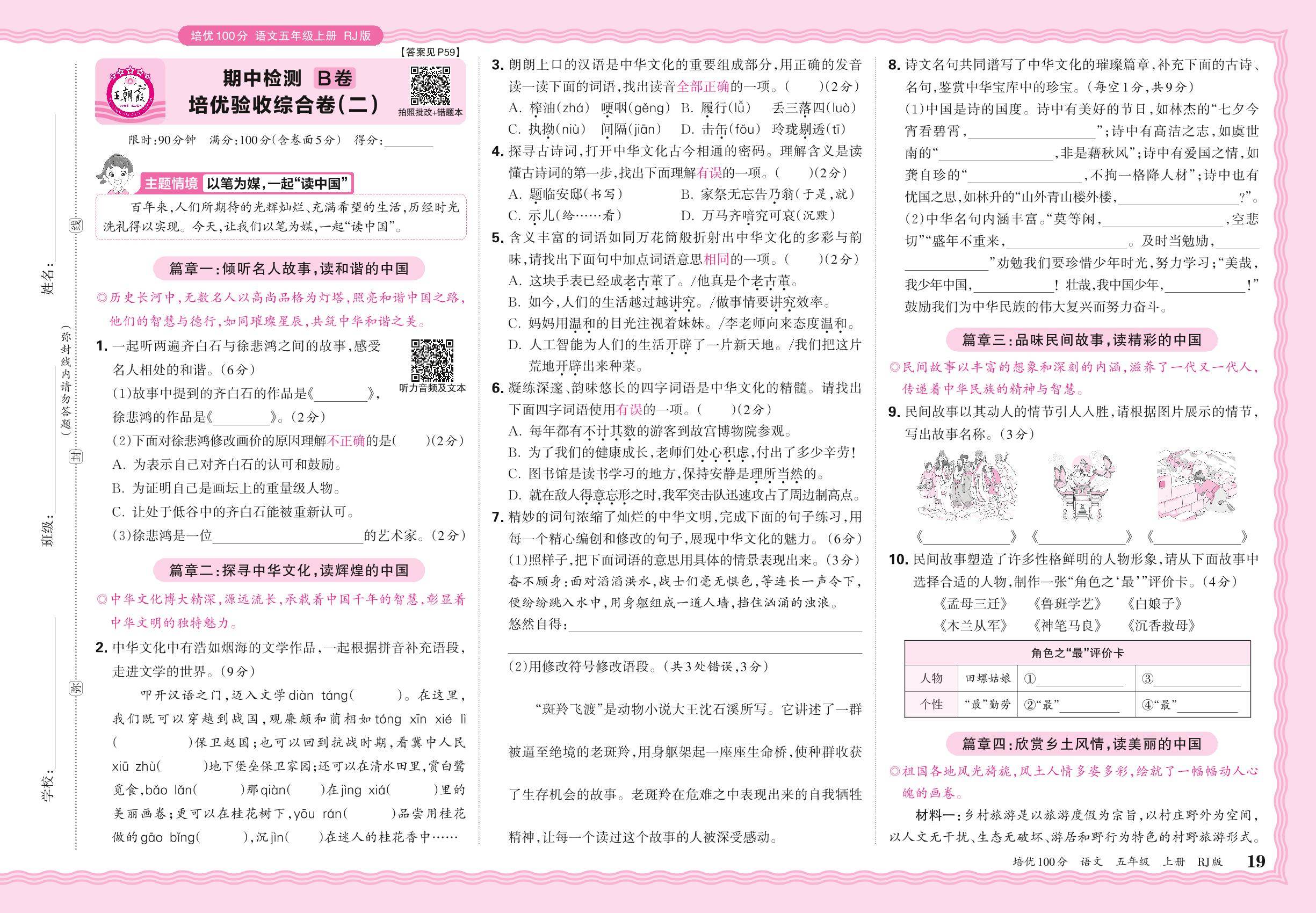 2024秋上册五年级语文人教版 期中检测B卷 培优验收综合卷(二)