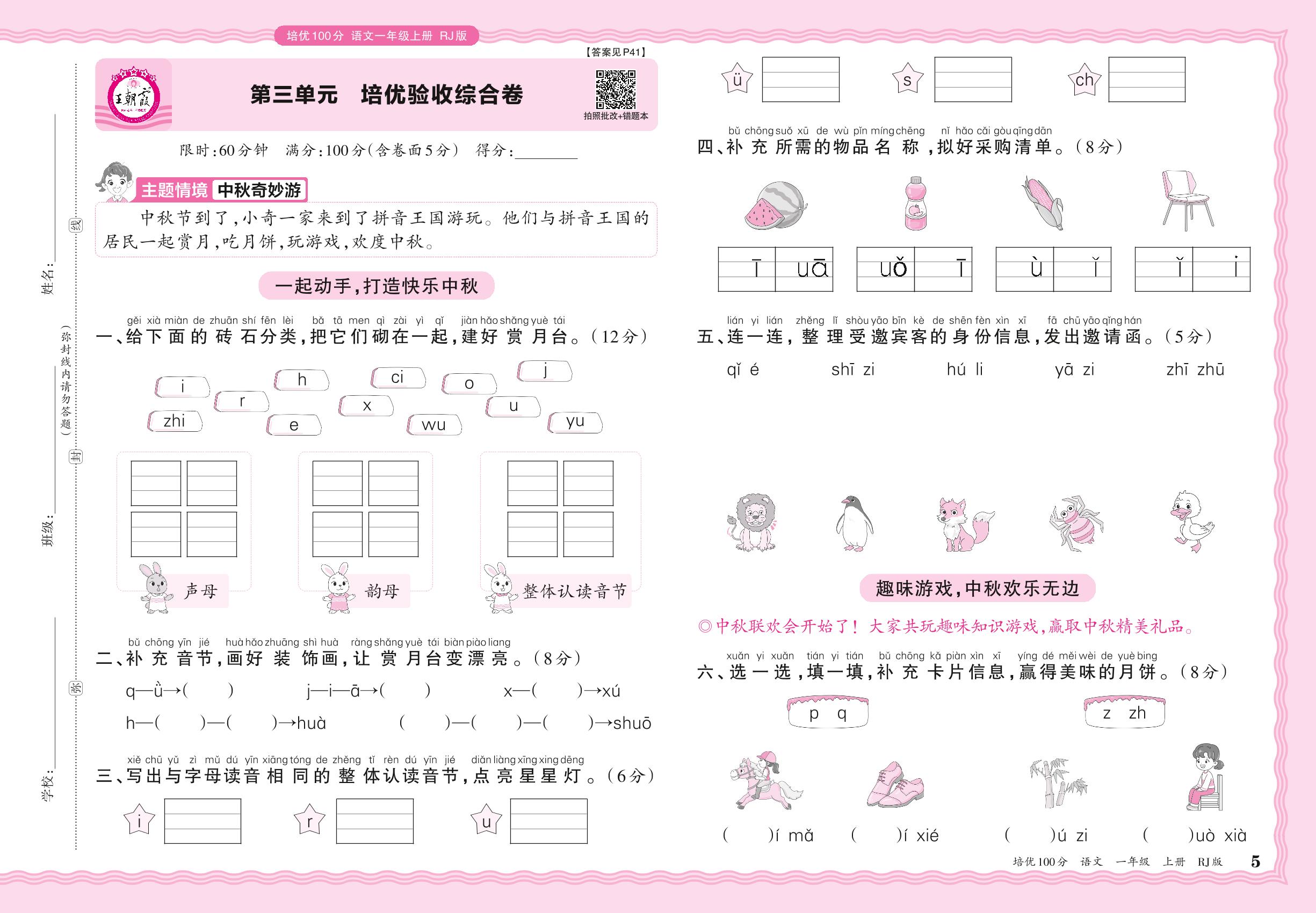 2024秋上册一年级语文人教版 第三单元 培优验收综合卷