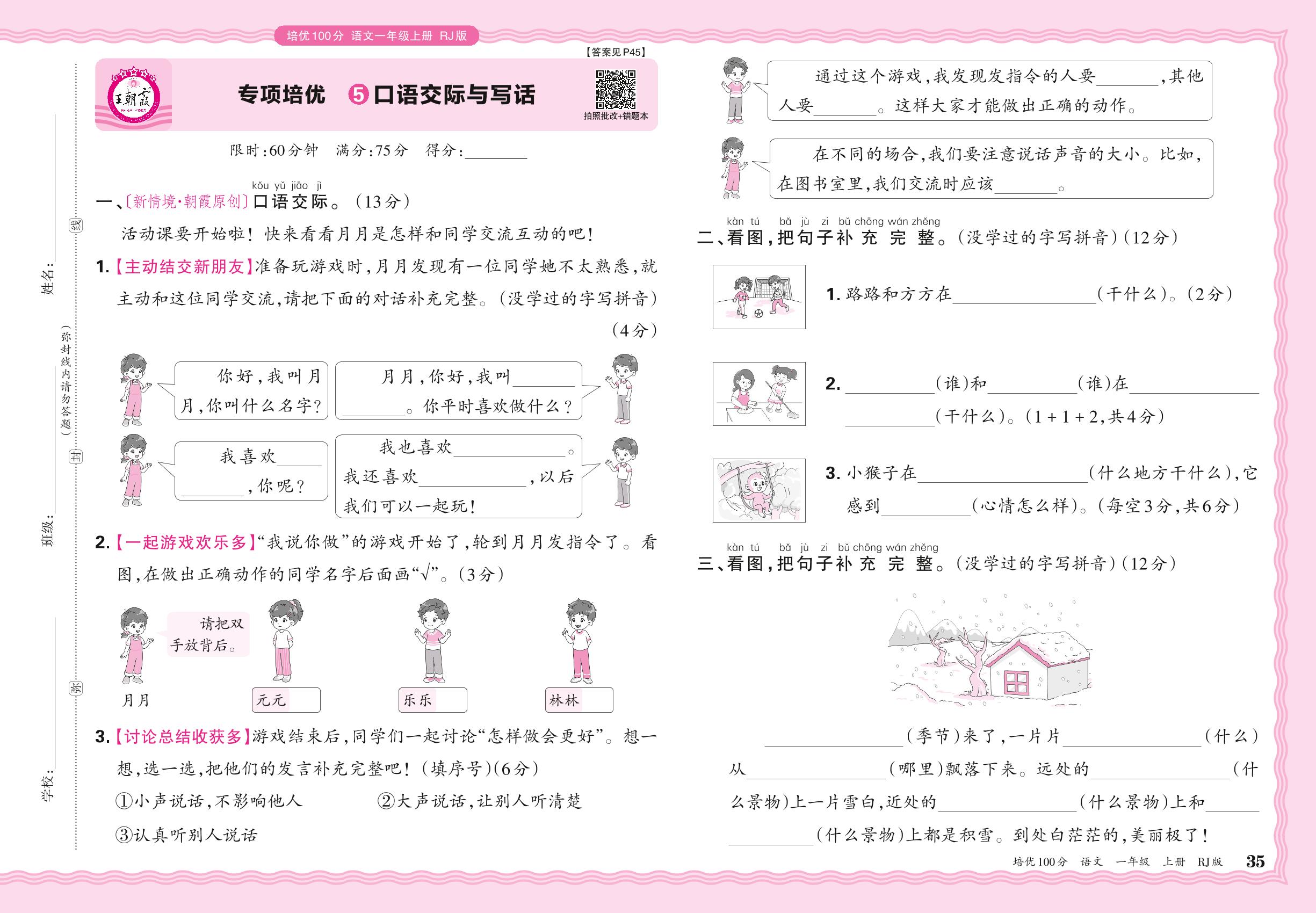 2024秋上册一年级语文人教版 期末专项卷PY版·口语交际与写话【5】