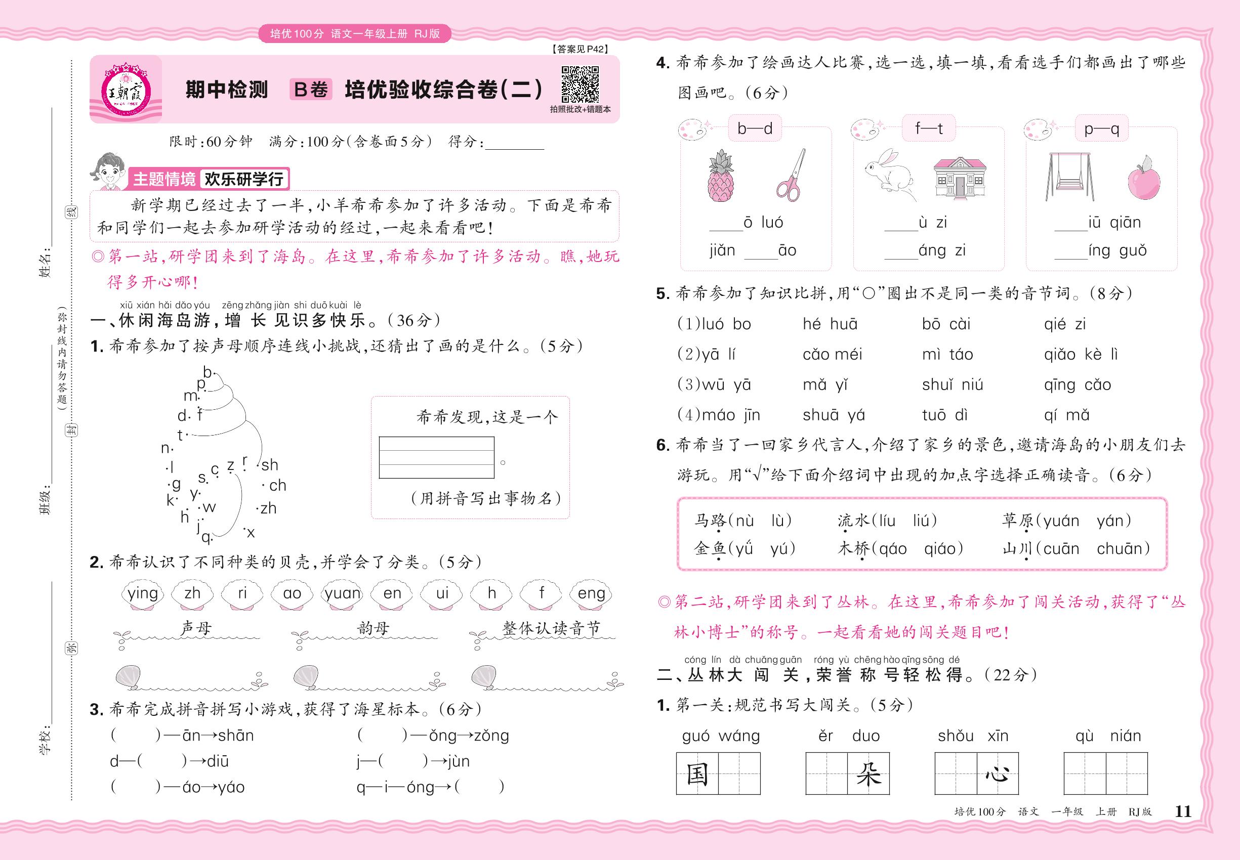2024秋上册一年级语文人教版 期中检测B卷 培优验收综合卷(二)