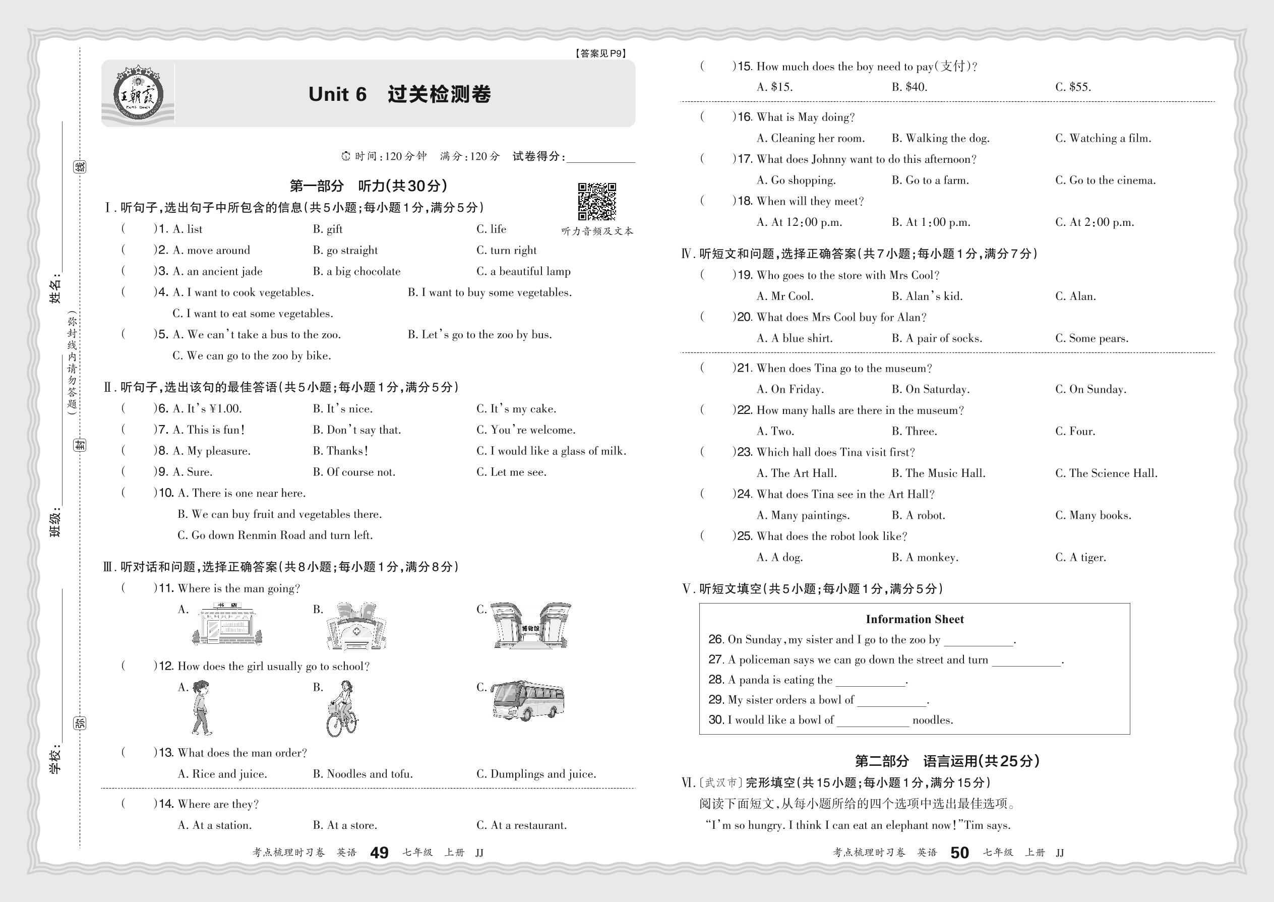 2024秋上册七年级英语冀教版 Unit 6 过关检测卷