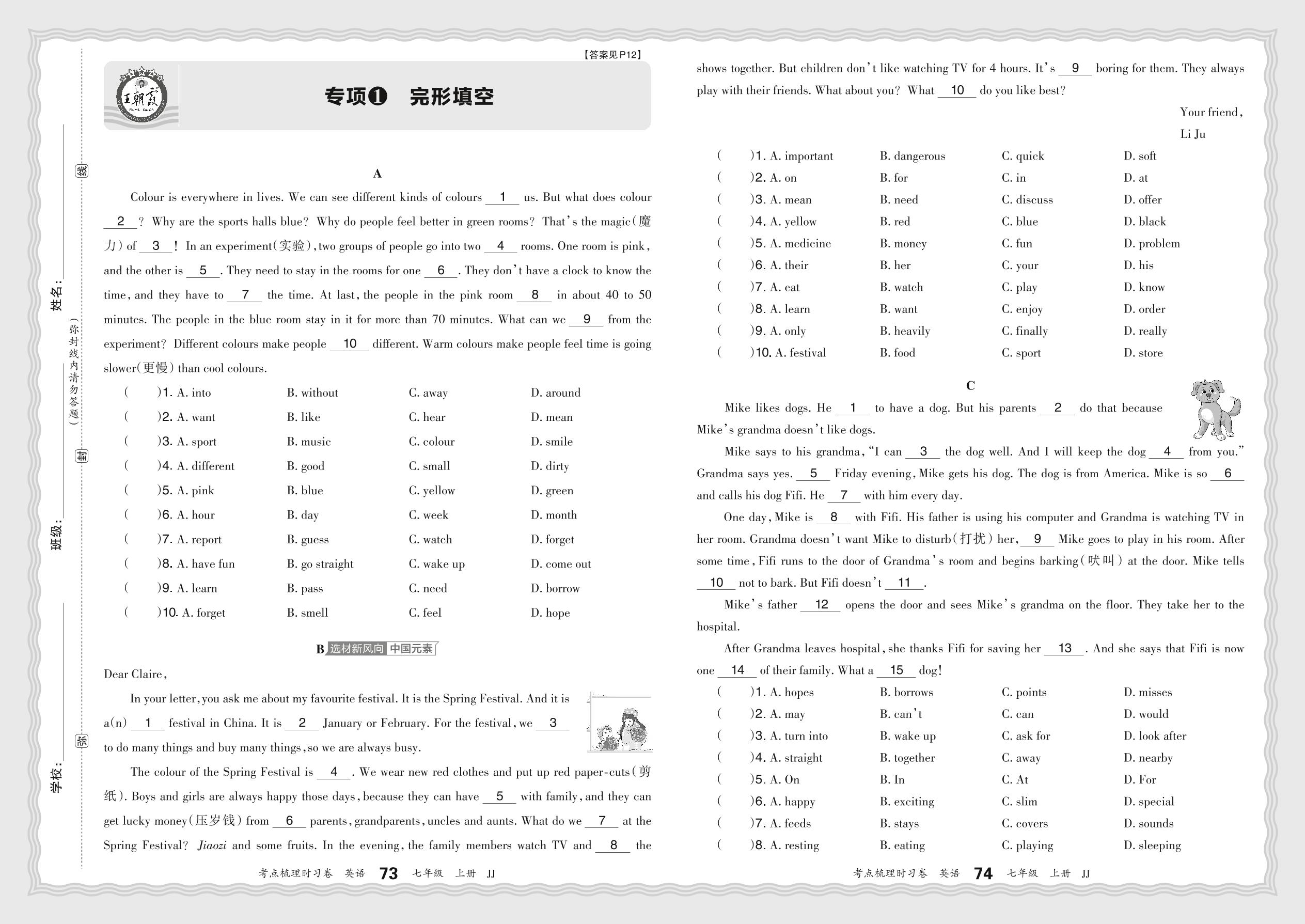 2024秋上册七年级英语冀教版 期末专项卷KD版·完形填空【1】