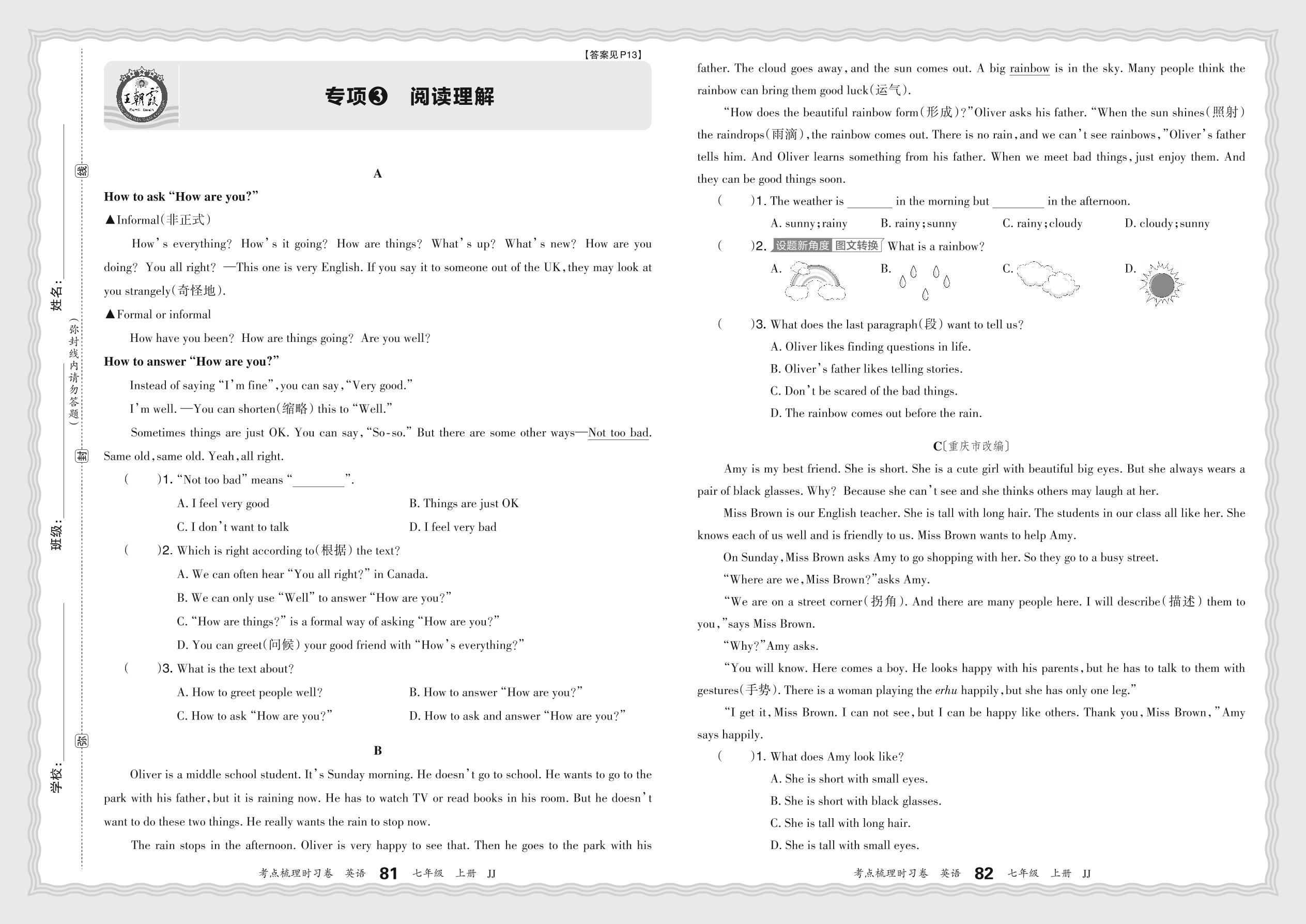 2024秋上册七年级英语冀教版 期末专项卷KD版·阅读理解【3】