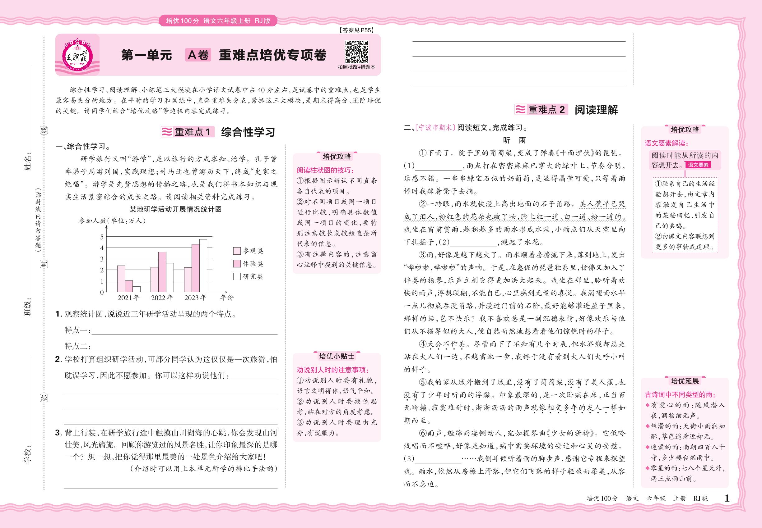 2024秋上册六年级语文人教版 第一单元A卷 重难点培优专项卷