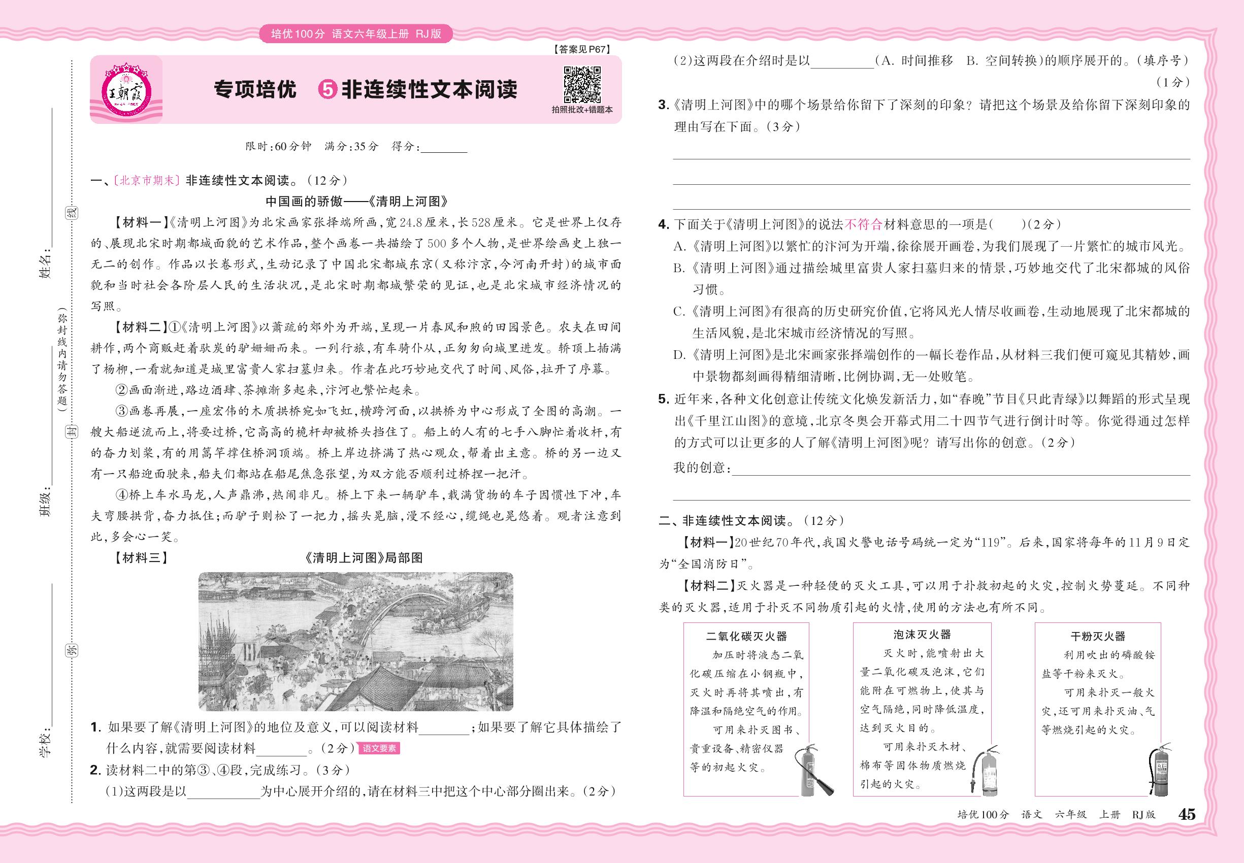 2024秋上册六年级语文人教版 期末专项卷PY版·非连续性文本阅读【5】