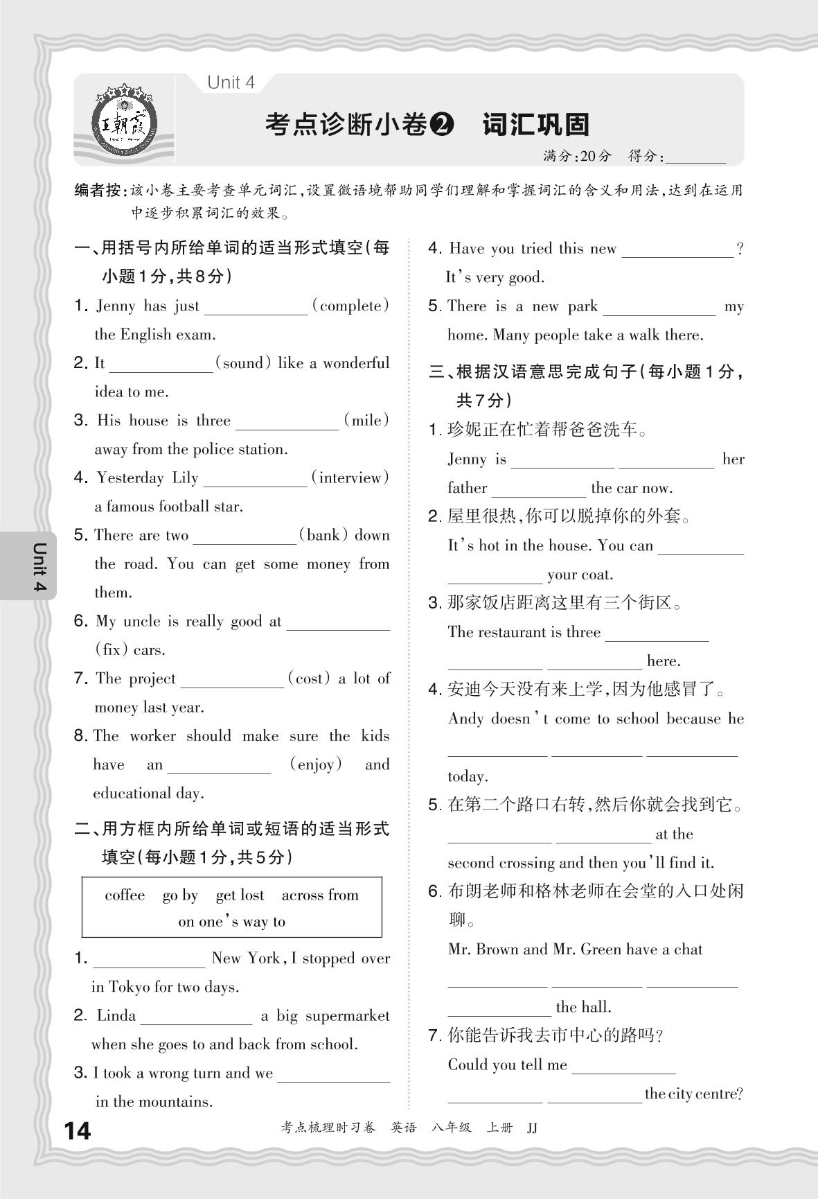 2024秋上册八年级英语冀教版 Unit 4 考点诊断小卷2 词汇巩固