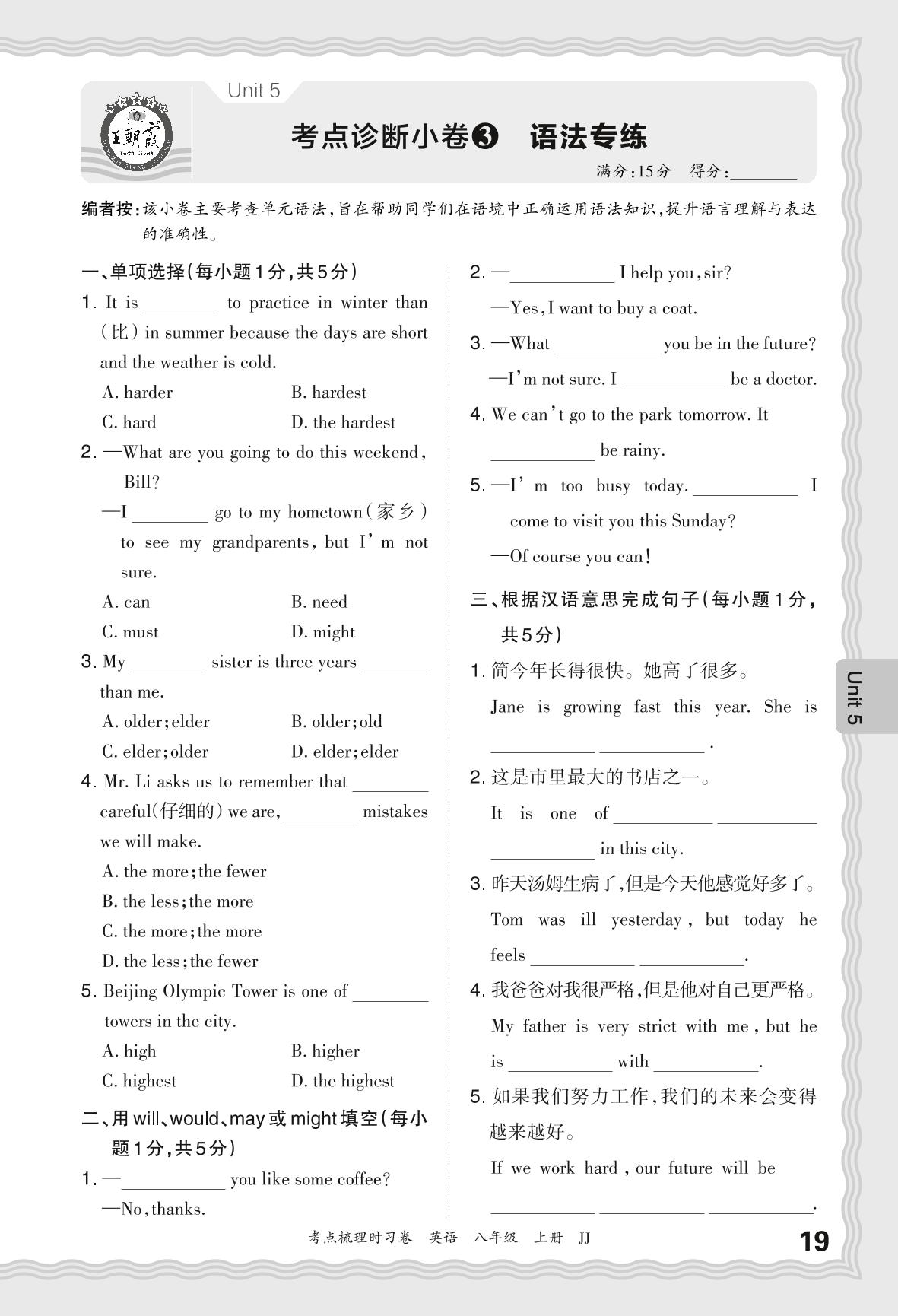 2024秋上册八年级英语冀教版 Unit 5 考点诊断小卷3 语法专练