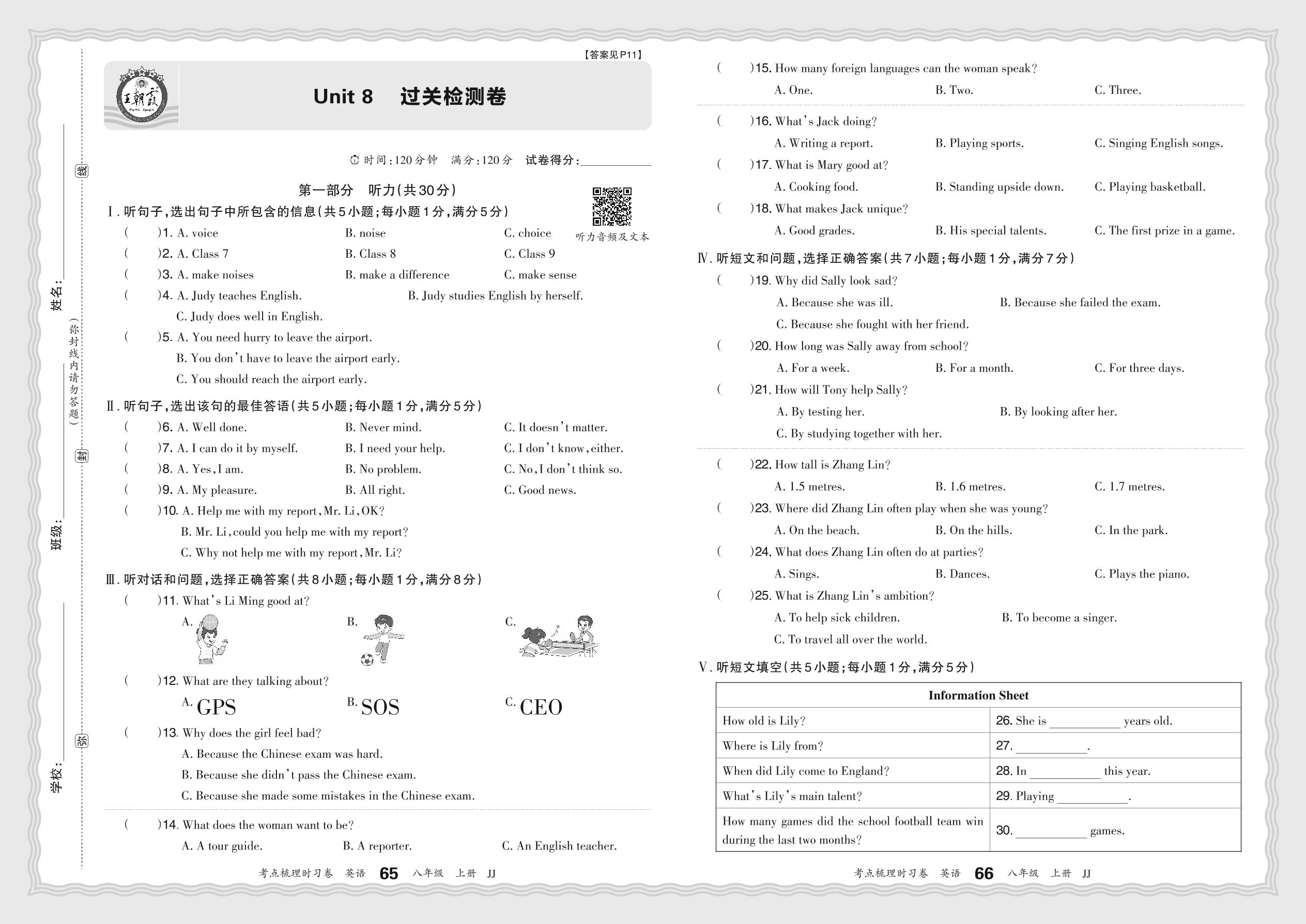 八年级英语冀教版上册单元卷