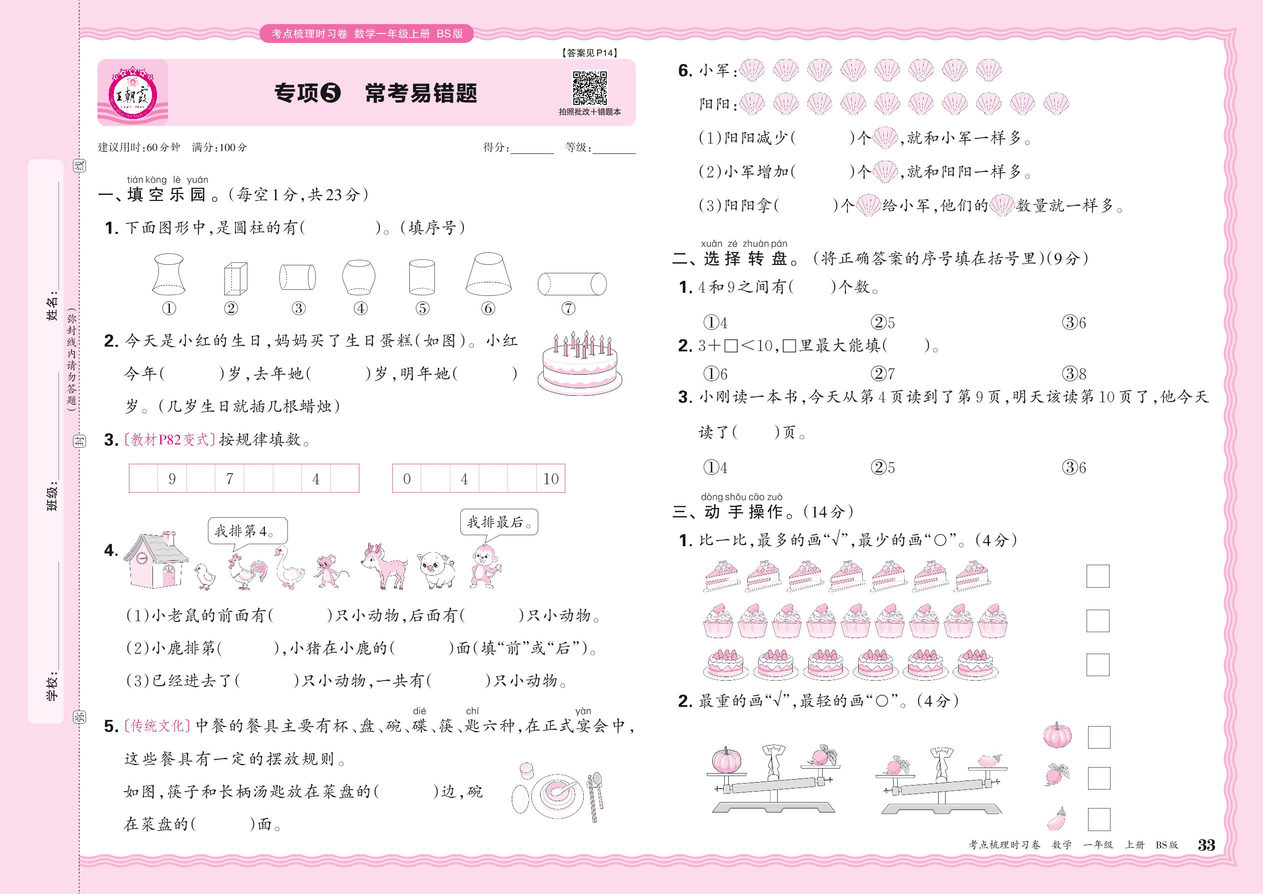 2024秋上册一年级数学北师版 期末专项卷KD版·常考易错题【5】