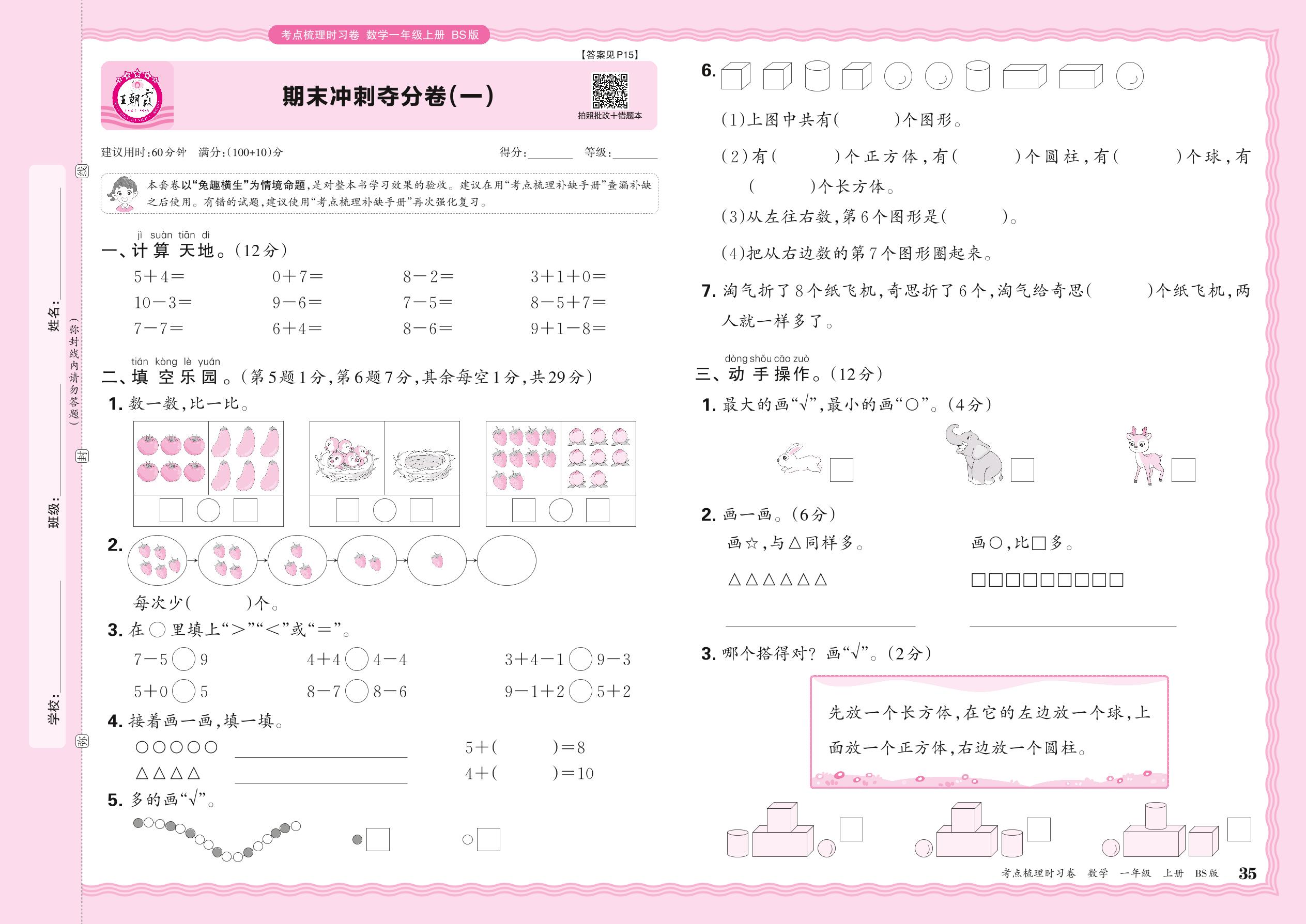 2024秋上册一年级数学北师版 期末冲刺夺分卷(一)