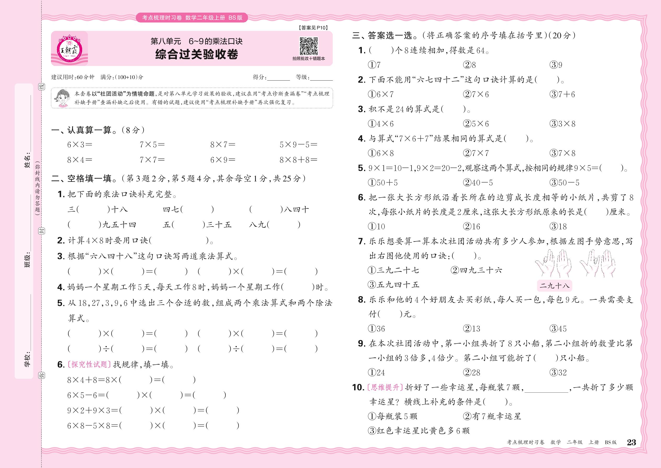 2024秋上册二年级数学北师版 第八单元 综合过关验收卷