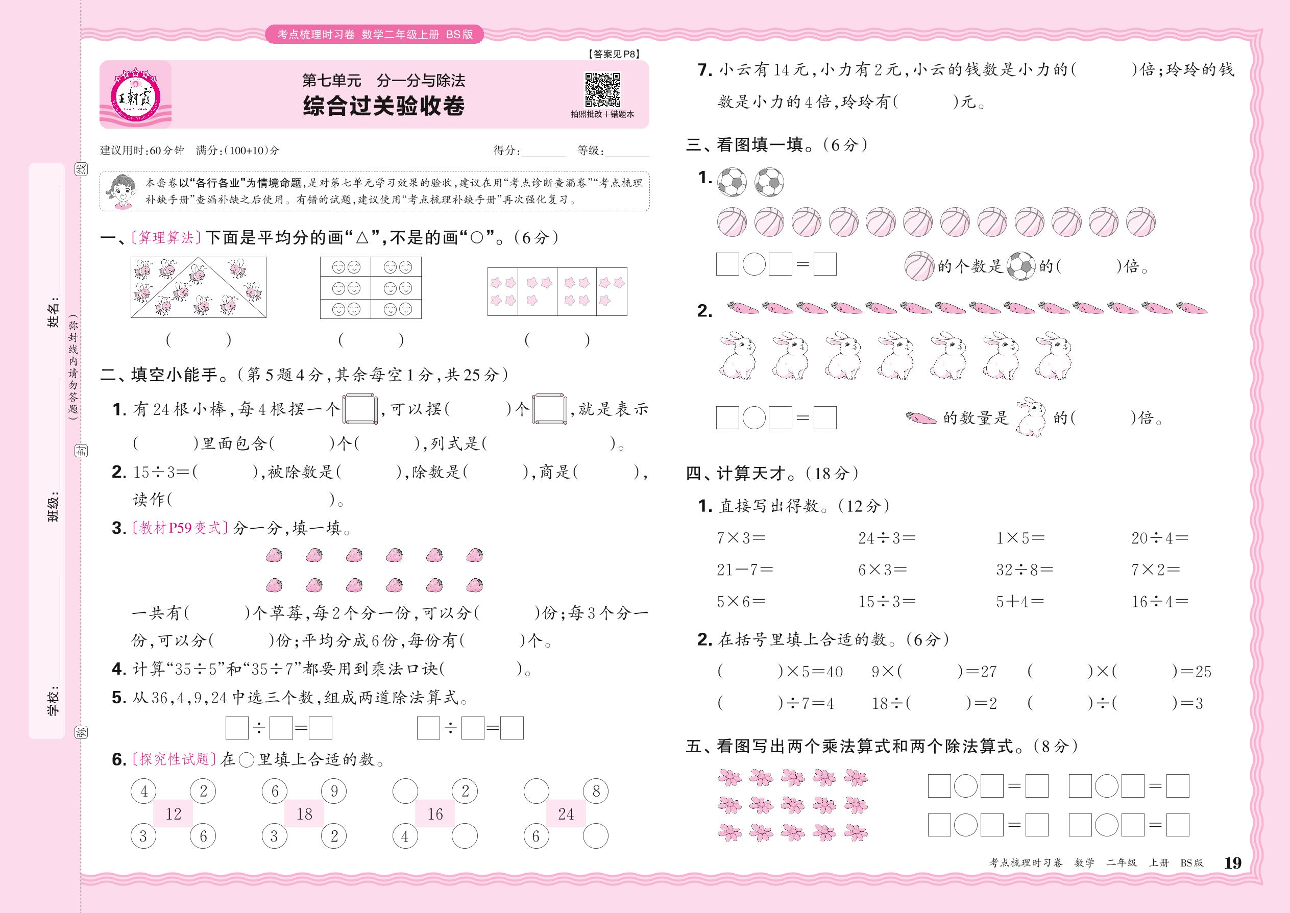 2024秋上册二年级数学北师版 第七单元 综合过关验收卷