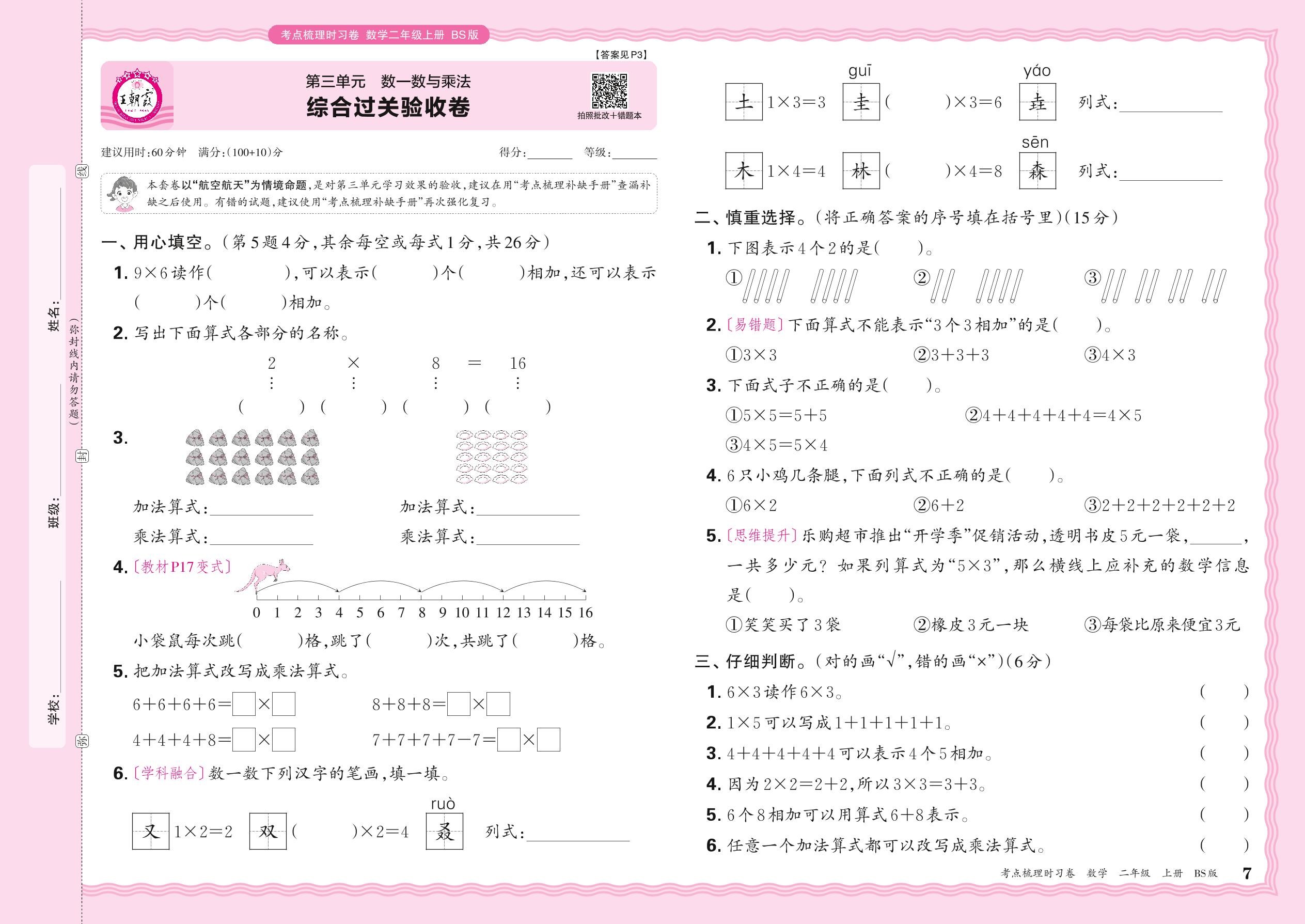 2024秋上册二年级数学北师版 第三单元 综合过关验收卷