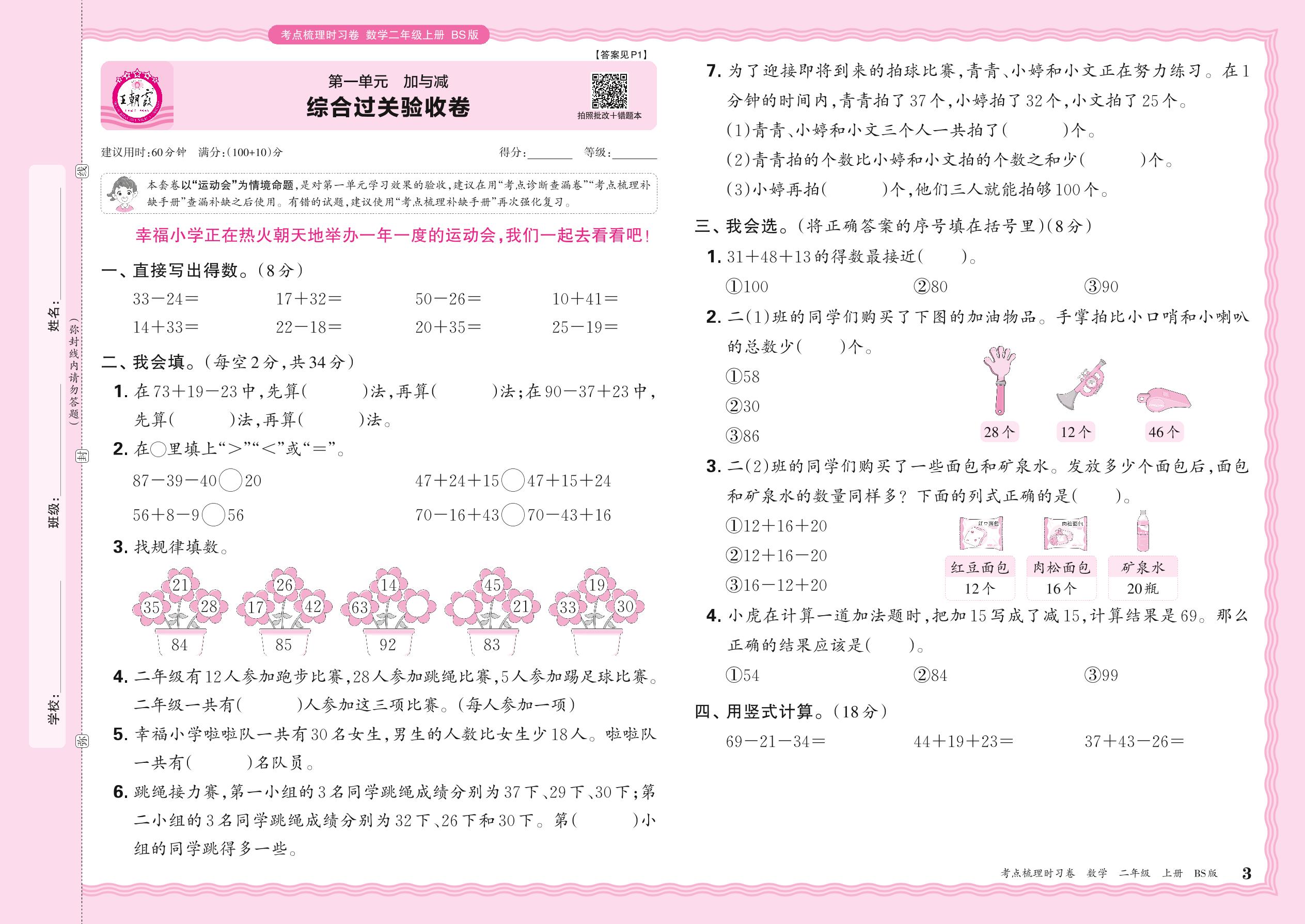 2024秋上册二年级数学北师版 第一单元 综合过关验收卷
