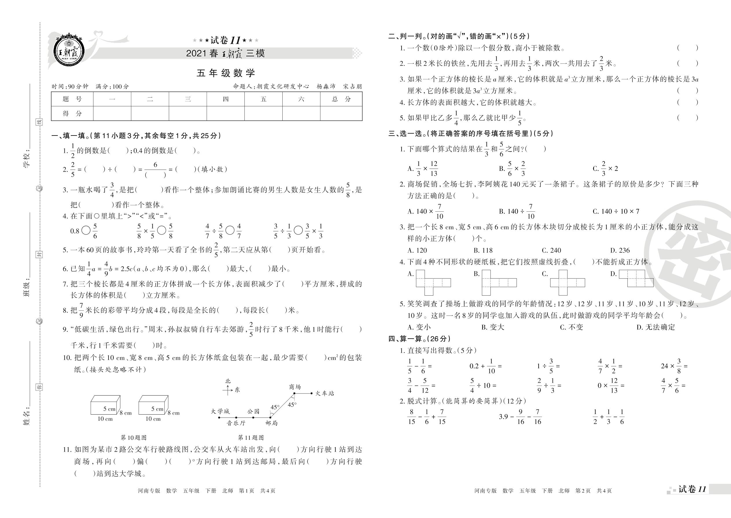 王朝霞期末模拟卷五年级下册数学(北师版)_R210804163343【11】