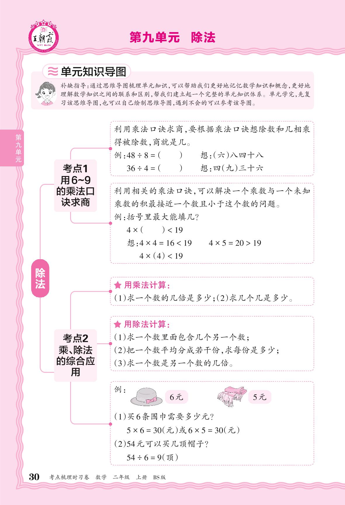 2024秋上册二年级数学北师版 考点梳理补缺手册——第九单元 除法