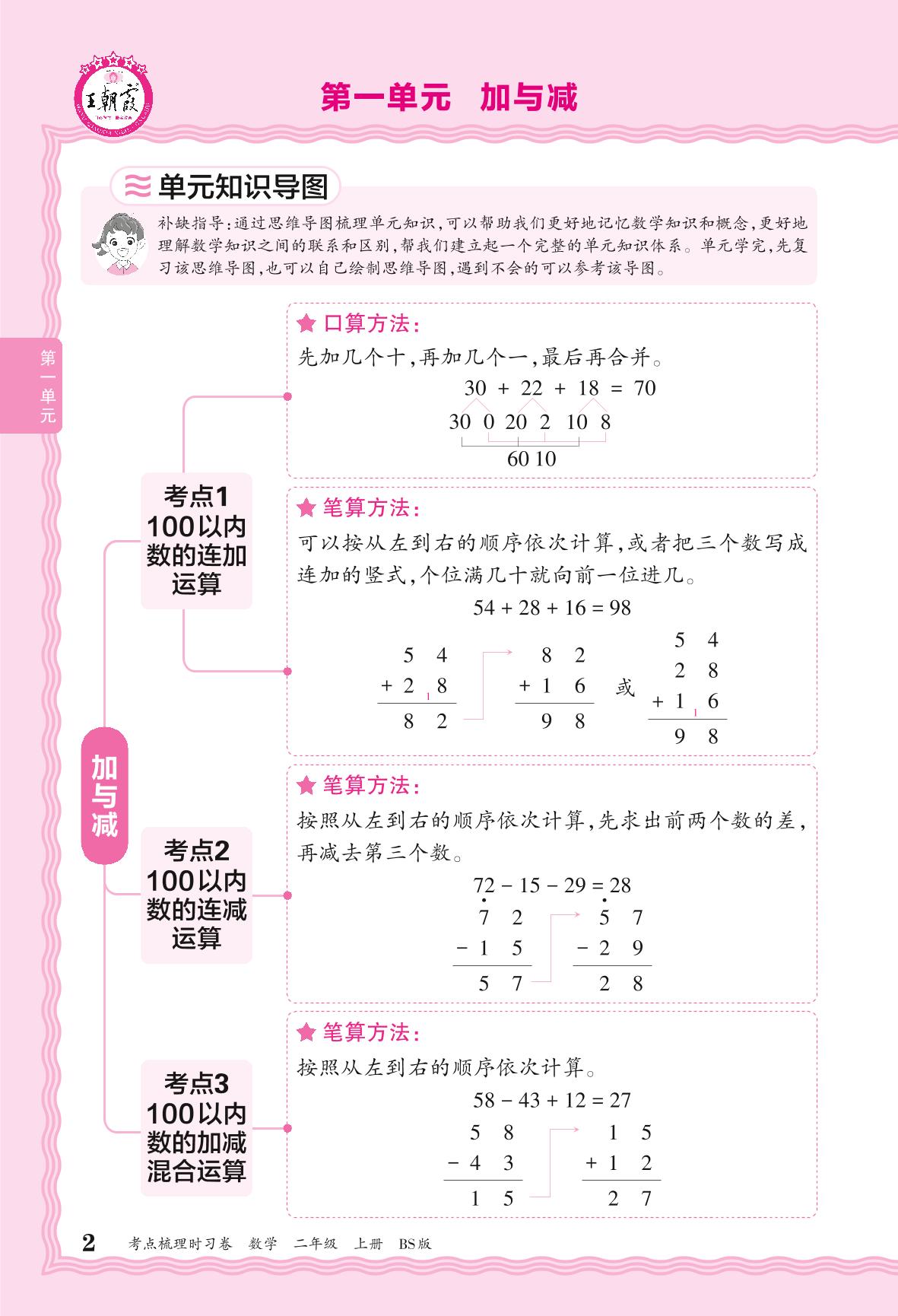 2024秋上册二年级数学北师版 考点梳理补缺手册——第一单元 加与减
