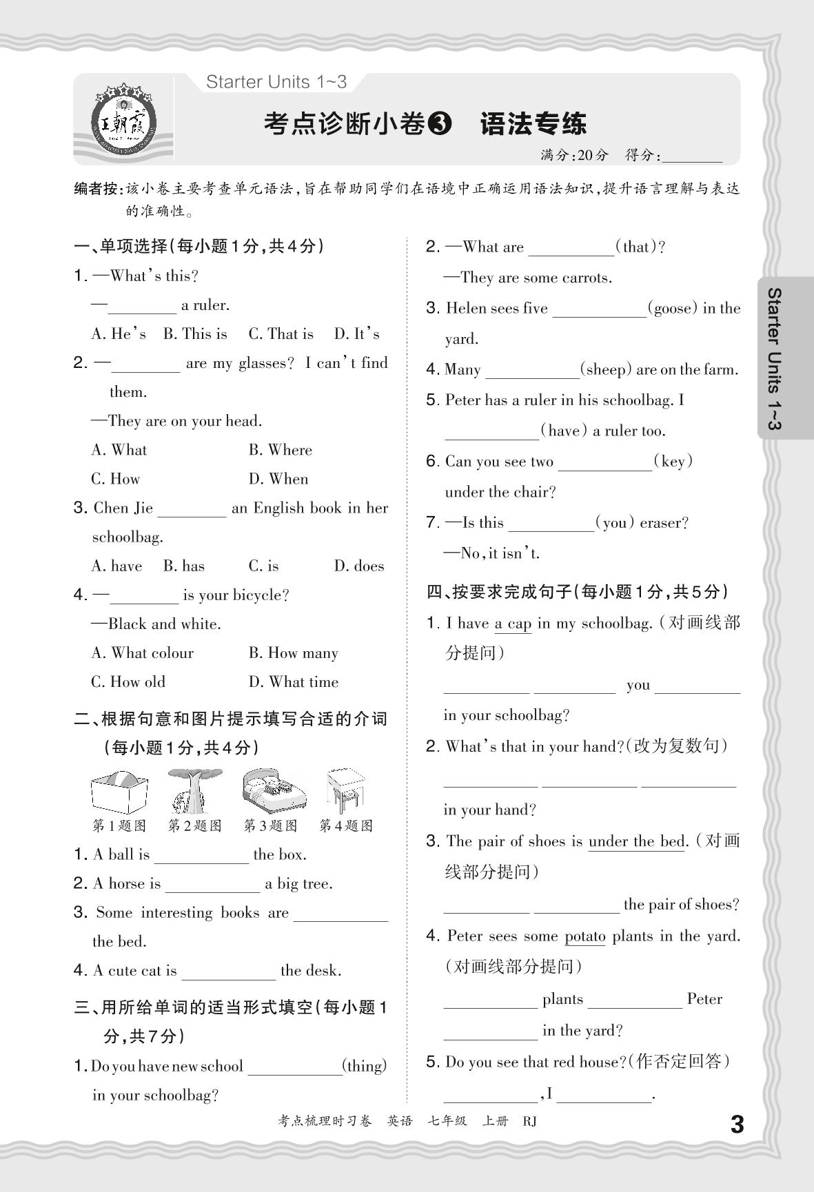 2024秋上册七年级英语人教版 Starter Units 1-3 考点诊断小卷3 语法专练