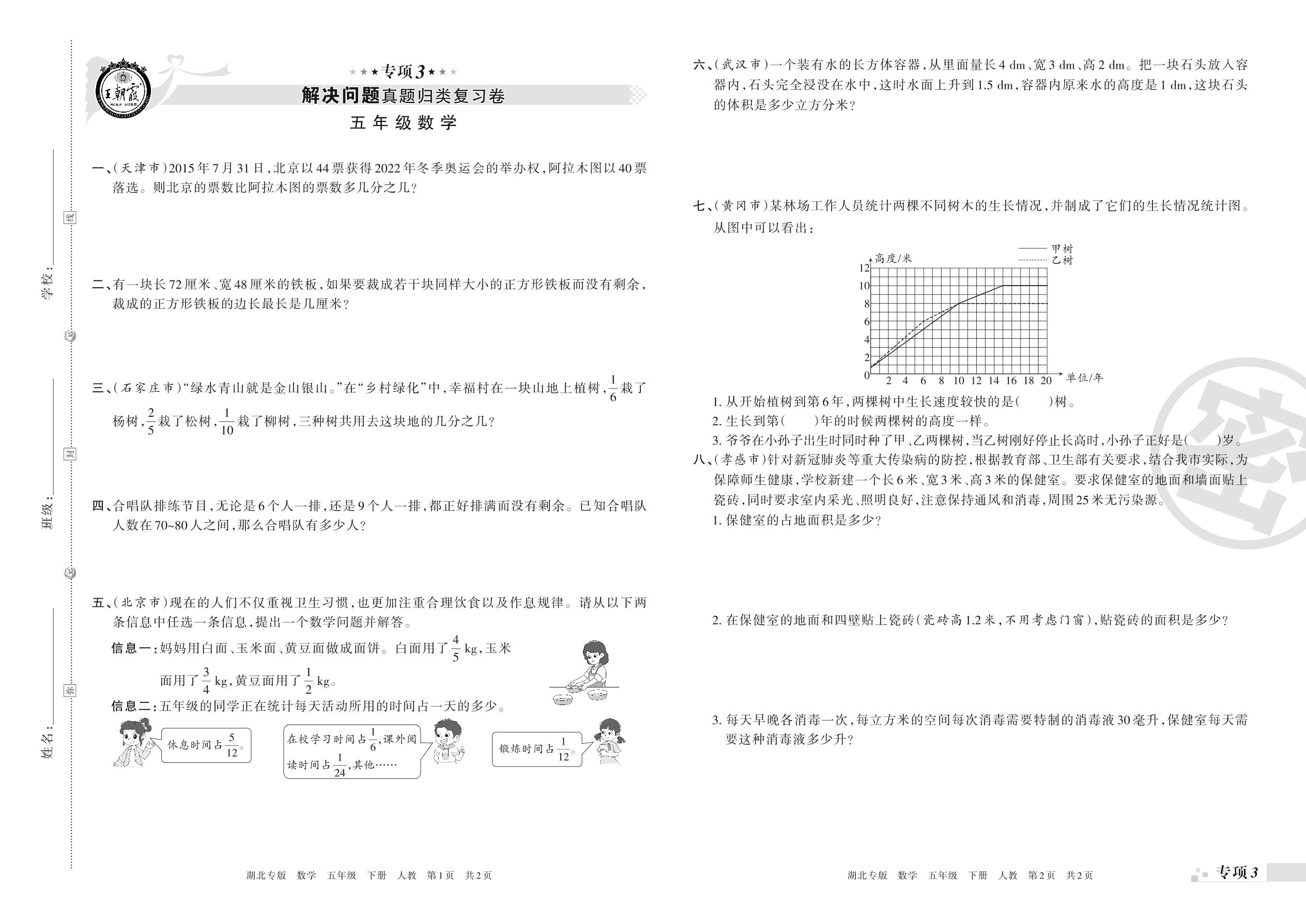 王朝霞期末专项卷——解决问题真题归类复习、新颖题速递:生活与数学五年级下册数学(人教版)_R210804163405【0】