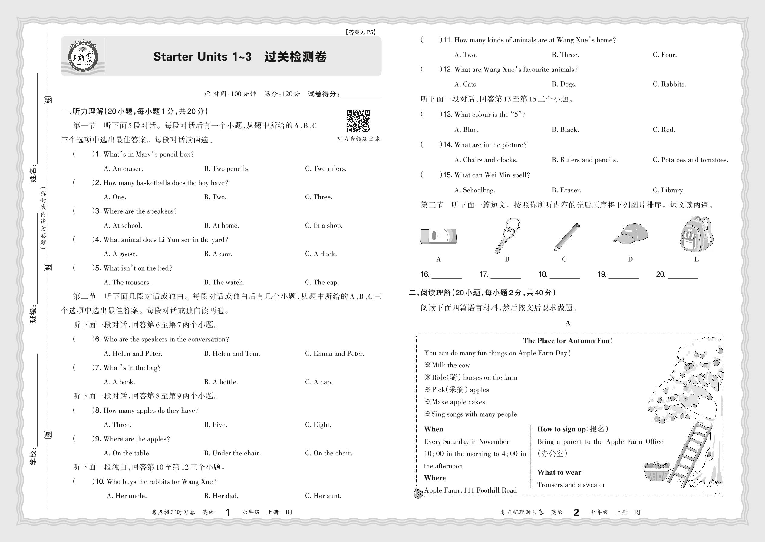 七年级英语人教版(2024)上册单元卷