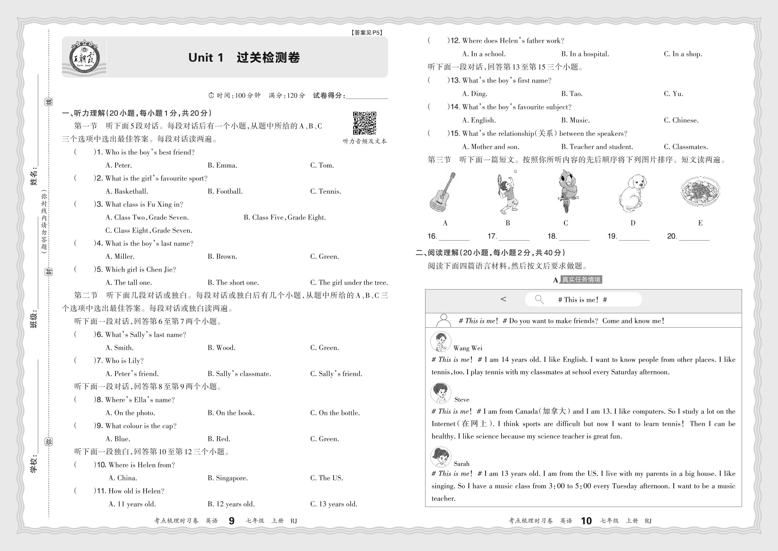 2024秋上册七年级英语人教版 Unit 1 过关检测卷