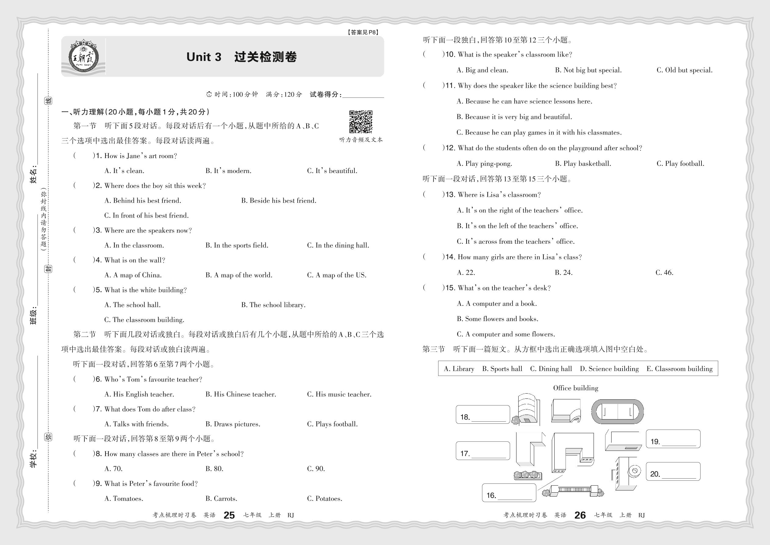2024秋上册七年级英语人教版 Unit 3 过关检测卷