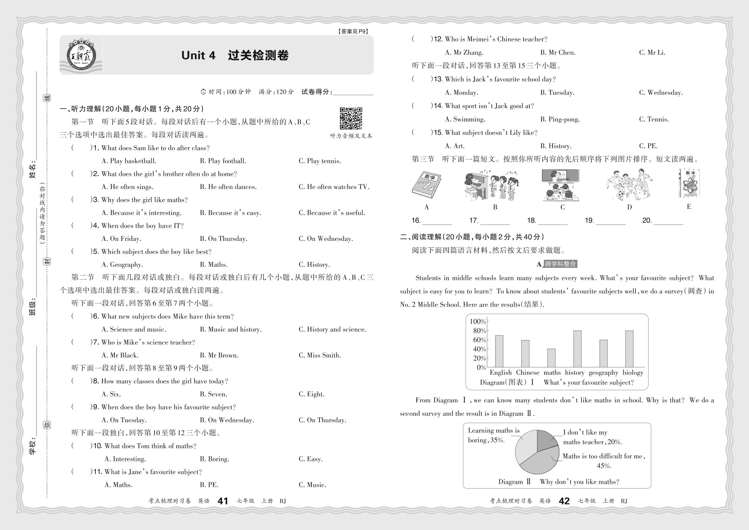 2024秋上册七年级英语人教版 Unit 4 过关检测卷