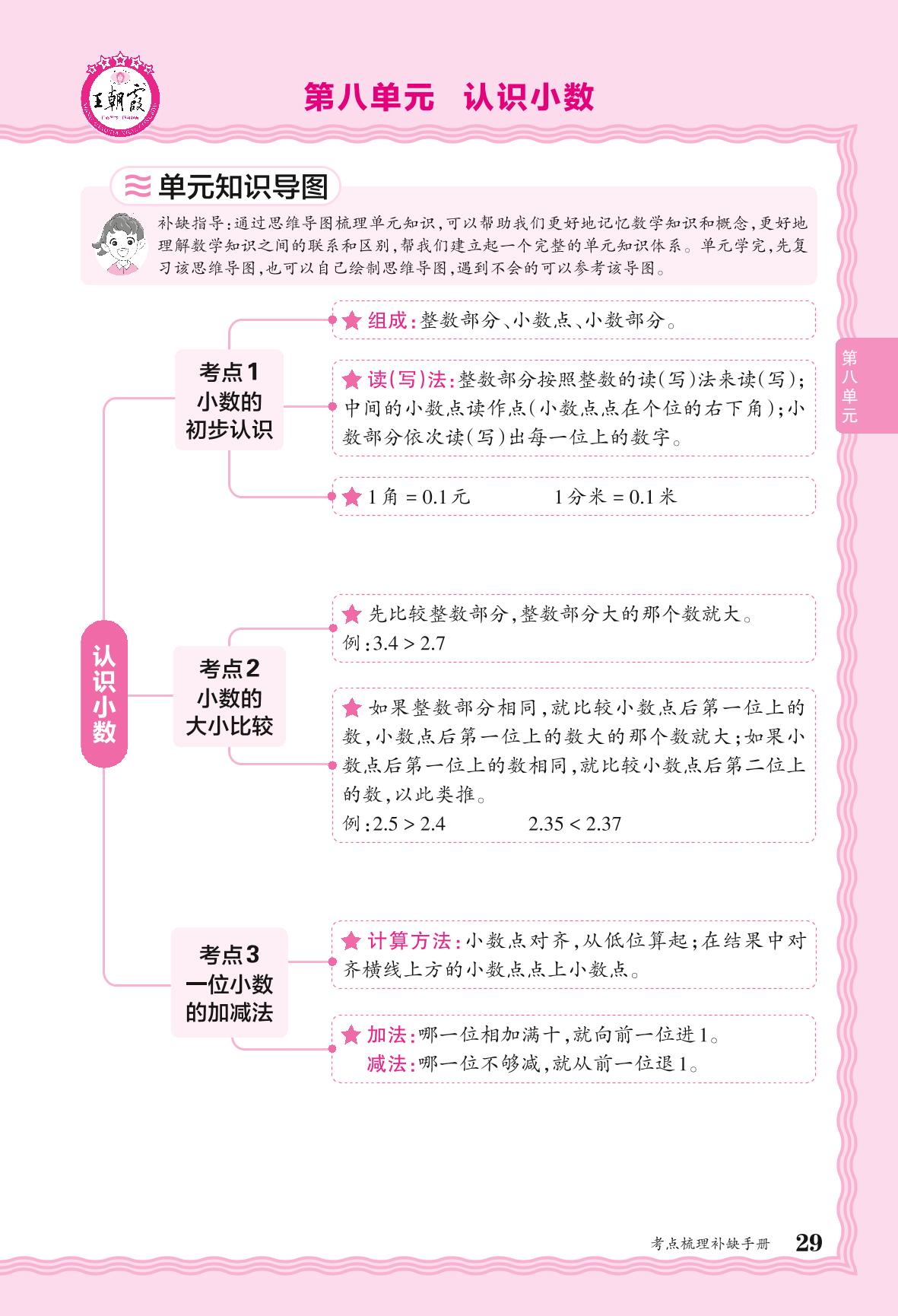 2024秋上册三年级数学北师版 考点梳理补缺手册——第八单元 认识小数